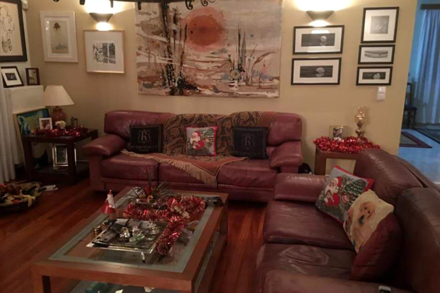 For sale 4-storey house of 430 sq.meters in Athens. Semi-Keller consists of 2 bedrooms, living room with kitchen, one kitchen, one bathroom. Erdgeschoss consists of living room with kitchen, one kitchen, one WC, one storeroom. 1. Etage consists of 4 bedrooms, living room, 2 bathrooms. 2. Etage consists of one bedroom. There are: solar panels for water heating, a fireplace, air conditioning, awnings, heating. The owners will be leaving the furniture with the sale. There is an alarm system installed. Extras included with the property: parking space, garden.