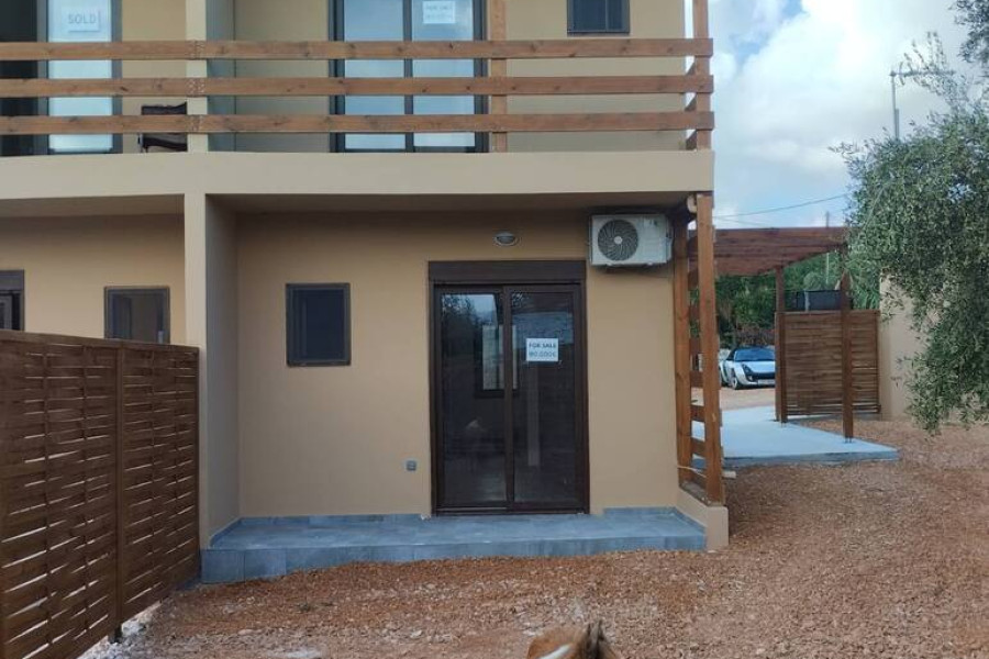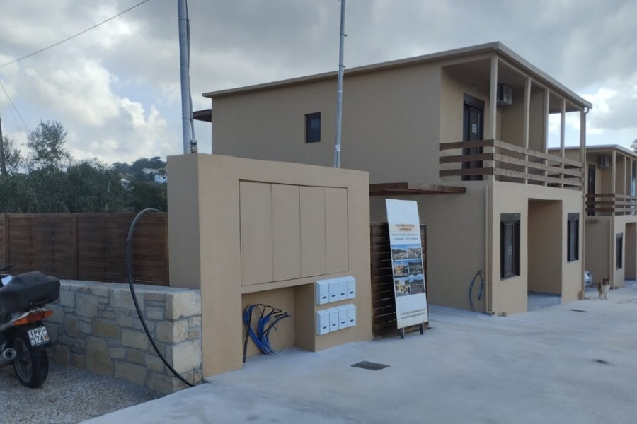 For sale under construction maisonette of 67 sq.meters in Crete. The maisonette has 2 levels. Erdgeschoss consists of living room with kitchen, one kitchen, one shower WC. 1. Etage consists of 2 bedrooms, one shower WC. A view of the mountain, the forest opens up from the windows. There are: solar panels for water heating, air conditioning. Extras included with the property: parking space.