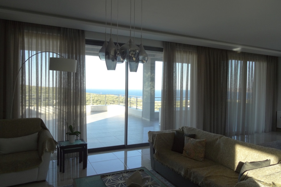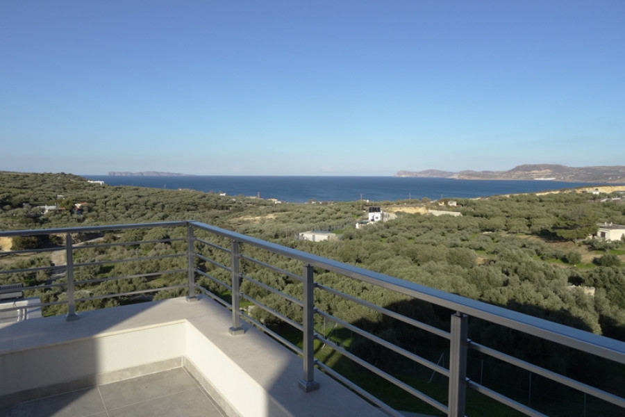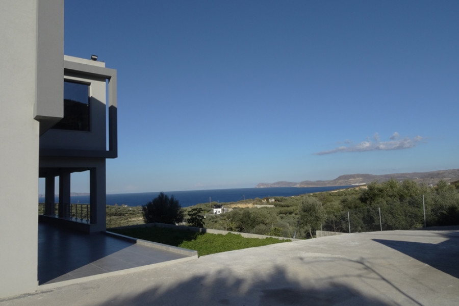 For sale 2 storey Villa in Crete. The villa is 200 sqm, built in 2019. It also has 140sqm of auxiliary spaces (garage - boiler room) and a plot of 4,000sqm with 2 meters high fence. The ground floor consists of 3 bedrooms, one of which has a dressing room, 1 office room and a large bathroom. On the 1st floor there is the kitchen, dining room and living room. There is also a wc. The villa has incredible sea views from all levels. Manufactures modern aluminum with thermal break, triple glazing and 7cm facade. It also has a 10kw solar photovoltaic system which exceeds the annual power consumption! With all the above the property is classified as energy class A+. There is air conditioning in all rooms, central heating with biomass and solar water heater. It also has state-of-the-art security system. A 50 ton reservoir has been installed on an elevated part of the plot for irrigation purposes. Finally there is infrastructure for the construction of a swimming pool which can be implemented upon reuqest.