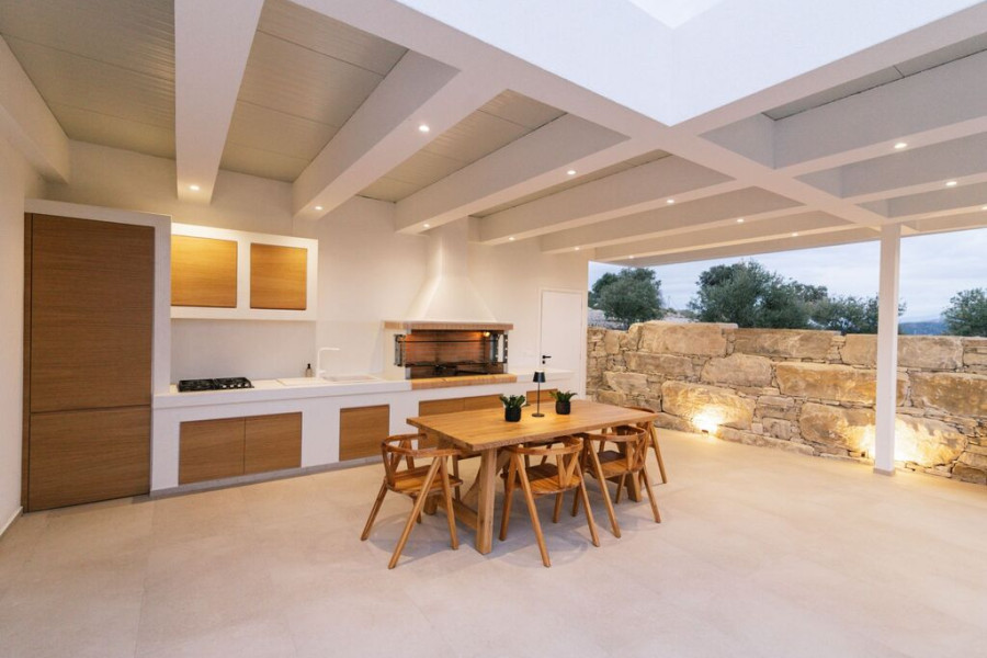 Suggested for sale a newly built, key ready villa in South Heraklion, Crete Island. This newly built, 3 bedroom, 3 and a half bathrooms 160m2 home is truly made for both entertaining and everyday living, with plenty of space and fabulous mountain, olive grove, village and sea views. Enjoy an open floor plan, high ceilings, and a convenient kitchen.More specifically, it is located on a private plot of 3500m2 which is a very quiet, completely private location hidden in the olive groves and at the same time just 1 minute driving distance from all the necessary amenities all year round. House Layout:Two bedrooms each has its own shower wc and a third smaller bedroom without a bath, an open space consisting of a kitchen with dining area and a sitting area with fireplace. The kitchen is the heart of this home and naturally flows to the garden offering the perfect indoor/outdoor lifestyle.Additional characteristics:Air conditioners for cooling and heating, floor heating, exterior thermo facade for insulation, fireplace, aluminum windows and shutters with double glazed, solar panels for hot water, alarm, and cameras. Fully furnished and equipped. Exterior Features:Swimming pool, barbecue, parking, lawn, a rock garden. Distances:Sandy Beaches: 1000 meters or 1 minute driveSupermarket: 1000 meters or 1 minute driveCity centre: 1000 meters or 1 minute driveHeraklion Airport: 64 km or 60 minutes driveNew Kastelli airport 85 km or 90 minutes drive