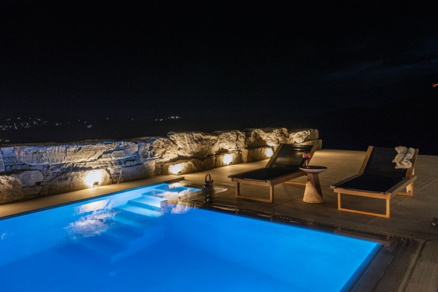 For sale 1-storey villa of 160 sq.meters in Crete. Villa consists of 3 bedrooms, 2 living rooms with kitchen, 2 bathrooms, 3 WC. A magnificent view of the city, the sea, the mountain, the forest opens up from the windows. There are: solar panels for water heating, a fireplace, air conditioning, heating, a barbecue area. The owners will be leaving the furniture with the sale. There is an alarm system installed. Extras included with the property: parking space, garden. The property boasts a swimming pool of private use.