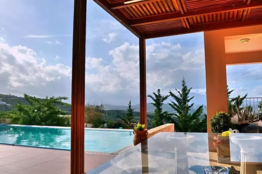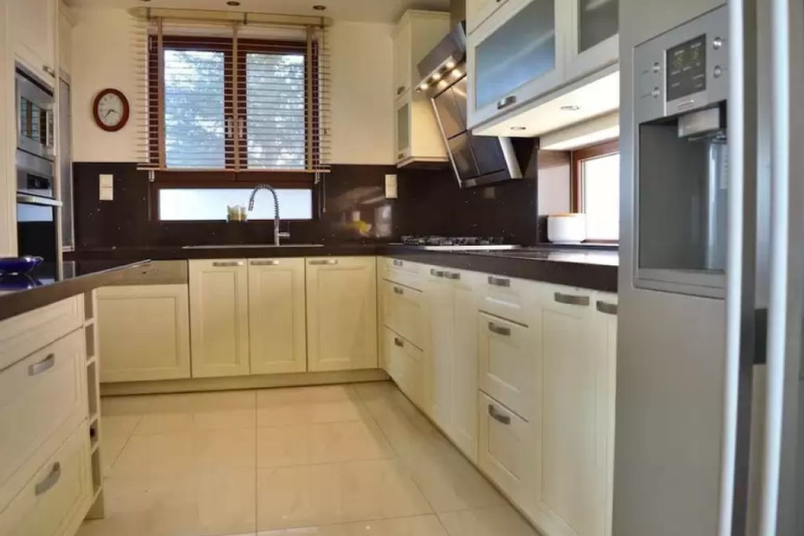 Lower Floor: 1 bedroom apartment with a double bed, A/C, a bathroom with a shower, a sitting area and a kitchenette. This apartment offers a terrace.Ground Floor: Living room with SMART TV, fireplace, high quality furniture, a dining table with comfortable chairs, a W.C., a store room with laundry machine, a fully equipped high standard kitchen with microwave, washing machine, filter coffee/espresso machine etc.First Floor: 1 Master bedroom with 1 double bed or 2 single beds, 1 bedroom with double bed and 1 bedroom with double bed or 2 single beds, 1 bathroom with bathtub.Outside area: 2000 square meters of property. Big area with a private pool,sun loungers, umbrellas, barbeque, wood oven, gazebo, coffee table, large dining table, big garden, Garage, Electronic gates
