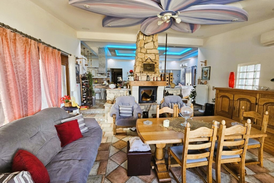 Stunning sea & mountain viewsPrivacy in a peaceful settingEnergy-efficient fireplace connected to heating systemA/C units & solar panelsBBQ area, spacious parking & garageAlarm system & security camerasLayout