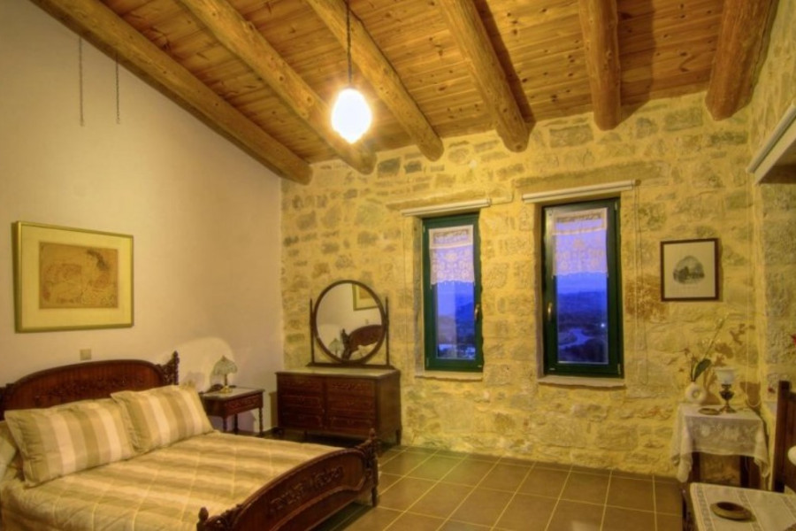Suggested for sale a villa in Rethymnon Perfecture. A unique 450m2 stone-built Villa, designed with taste in traditional style and is located within a land plot of 12.000m2 offering magnificent views to the sea, the mountains and to the olive grooves.