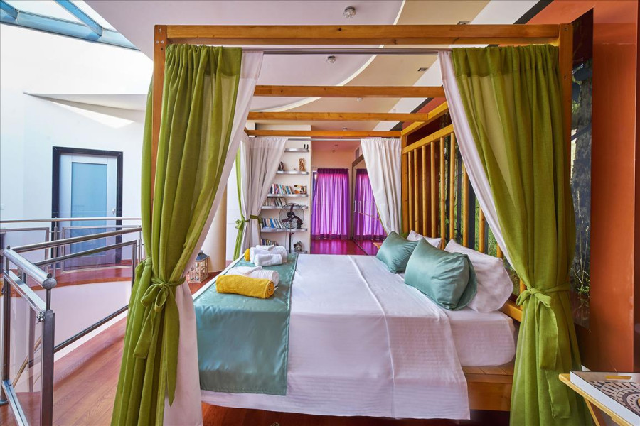 Spacious 200 m² open-plan area with living room and fireplace, office space, dining area and fully equipped kitchen with top-quality fixturesDirect access to the veranda, pool and garden2 double bedrooms (one open-plan next to the living area)1 double bedroom with en-suite bathroom and showerFirst Floor (independent entrance)