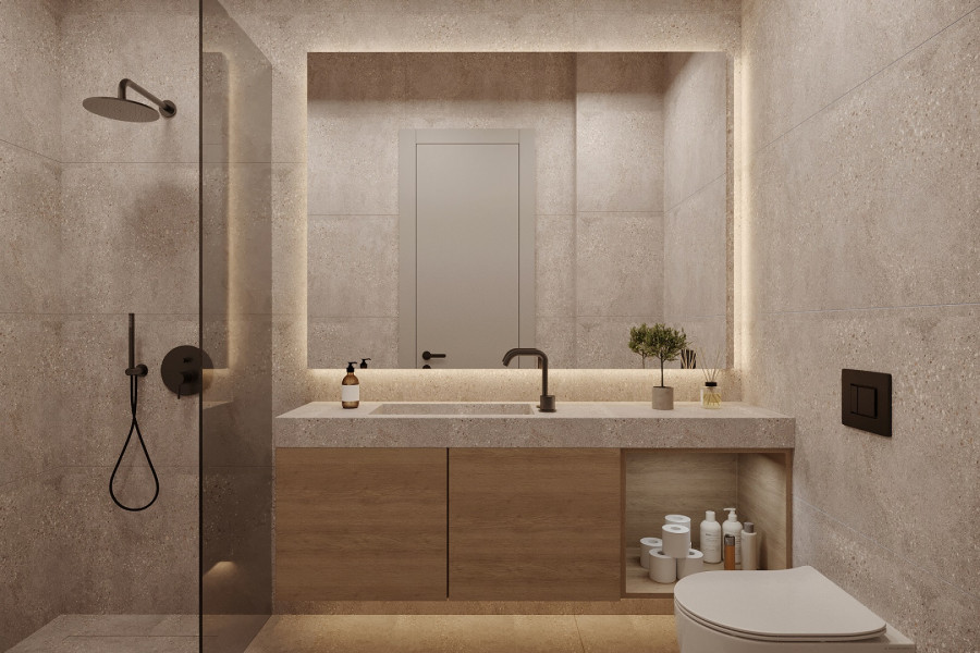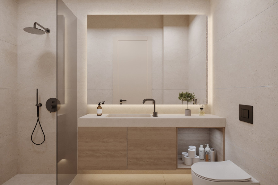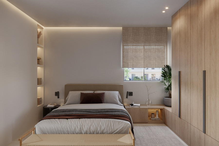 The residence includes 3 bedrooms, with the master bedroom featuring a separate dressing area, as well as 3 contemporary bathrooms finished with high-quality materials.