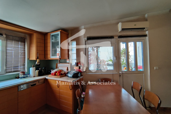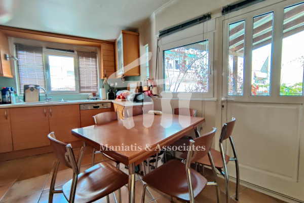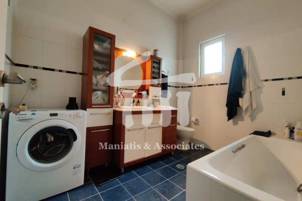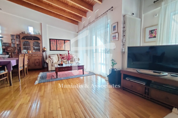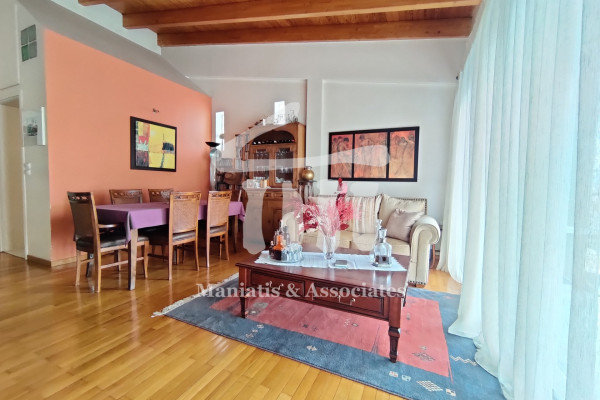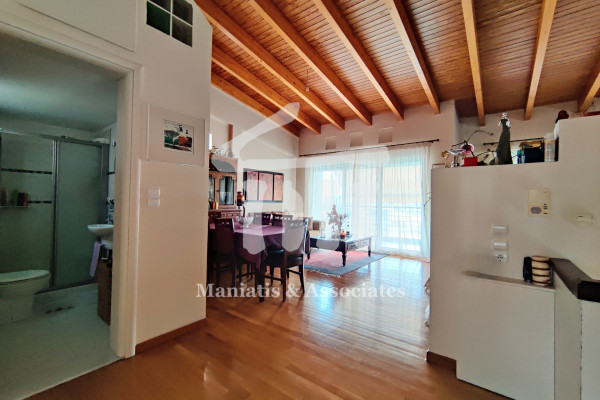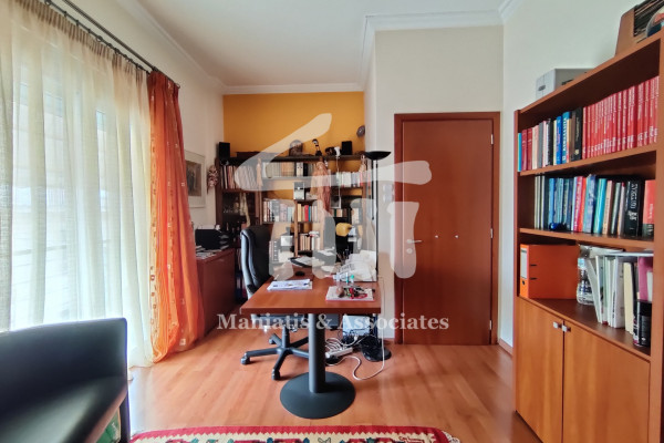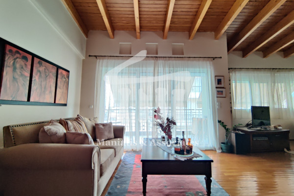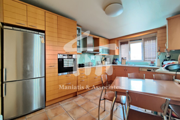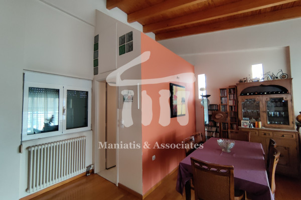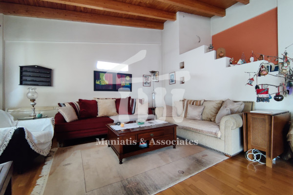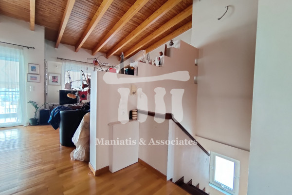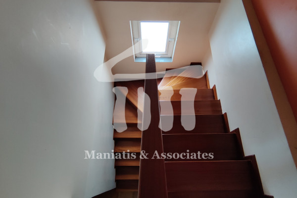 Entering from the main entrance, you go up the main staircase and reach the first level of the maisonette, where there is the office space and 3 large bedrooms with a bathroom. Then, via an internal wooden staircase, you go up to the 2nd level, in which there is a very large living room, the dining room, an independent kitchen with oak cabinets and another bathroom. The floors in the bedrooms and in the living-dining room are wooden, while the rest of the areas are covered with luxury tiles. Independent heating with oil has been chosen for each level. The residence has air conditioning in all areas, a security door, as well as aluminum frames, new type, with double glazing and screens.