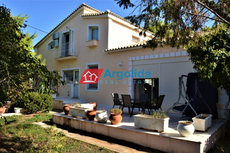 For sale 3-storey house of 210 sq.meters in Eastern Peloponnese. Erdgeschoss consists of one bedroom, living room with kitchen, one bathroom. 1. Etage consists of one bedroom, living room with kitchen, one bathroom. 2. Etage consists of 2 bedrooms, one shower WC. A magnificent view of the sea, the mountain, the forest opens up from the windows. There are: a fireplace, air conditioning, awnings. The owners will be leaving the furniture with the sale. Extras included with the property: parking space, garden.