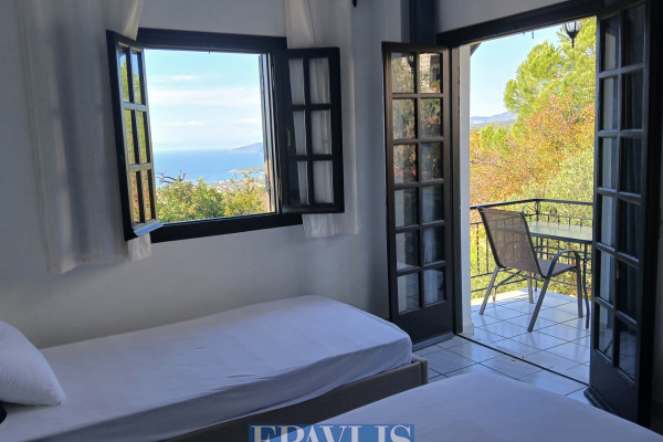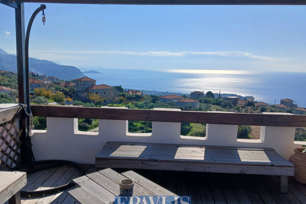 Traditional Detached House | West Mani. A traditional detached residence of 160 sq.m. set on a 2,500 sq.m. plot, located in a picturesque village of West Mani, offering exceptional sea views. The house is developed over two levels. The ground floor comprises a living room with fireplace, kitchen, one bedroom, one bathroom, and spacious verandas. The first floor features three bedrooms, one of which is a master bedroom, three bathrooms, and wrap-around verandas with stunning views of the Messinian Gulf. A rooftop terrace offers unobstructed panoramic views. Additional features include aluminum window frames, air conditioning, solar water heater, boiler, double-glazed windows, tiled floors, and a 20 sq.m. storage room. The property was built in 1993 and partially renovated in 2010. The residence also offers four outdoor parking spaces, Energy Certificate: Class C, and a garden with Koroneiki olive trees. It is in very good condition, located approximately 1 km from the sea, and close to the village square, church, supermarket, and dining options. The property is 45 km from the city of Kalamata and enjoys panoramic, unobstructed views of both mountain and sea, with an east-south orientation. The house is front-facing, bright, airy, sunny, and dual-aspect, making it ideal for a holiday home, short-term rental (Airbnb), or investment. Additional advantages include: internal staircase, private garden, no communal charges, trees, pets allowed, quiet neighborhood, private borehole, verandas, and septic tank. Price: €350,000. EPAVLIS REALTORS, contact phone: 2109945719, email: