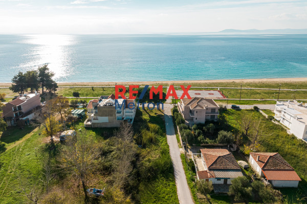 Beachfront plot on the first line of Toroni Halkidiki surface 550, 96 square meters, even and buildable with building factor 0.5 and coverage factor 60% in an excellent location in Toroni Halkidiki. It is located directly behind a beachfront plot and has street frontage.