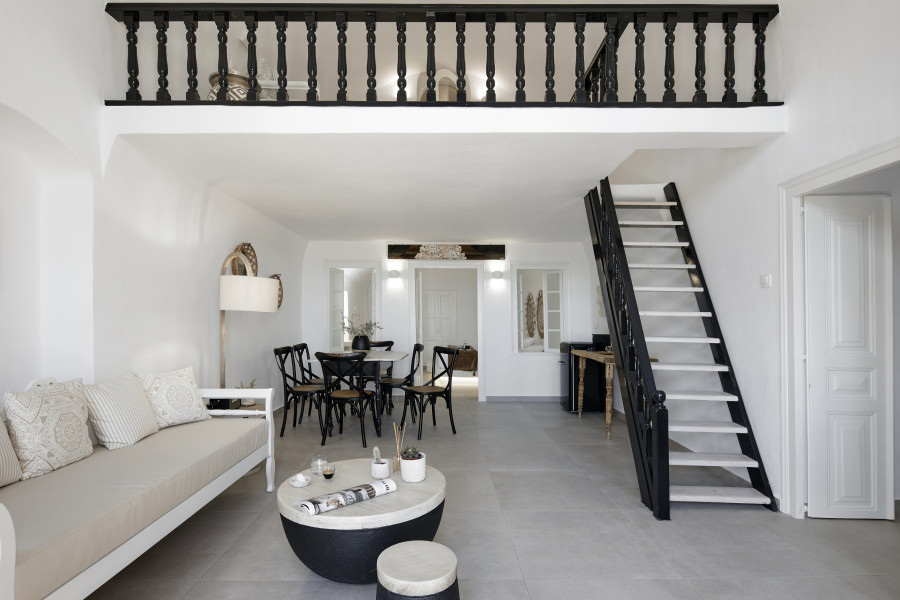 A restored mansion dating back to 1890, offering unobstructed views of the island landscape and the sea, located in the traditional settlement of Exo Gonia, Santorini.