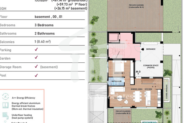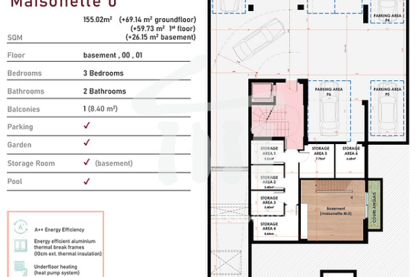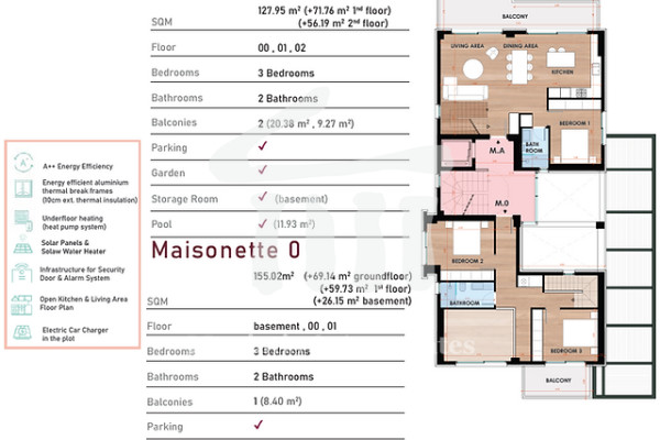 Maisonette For sale, floor: Basement, Ground floor, 1st (3 Levels), in Glyfada - Aixoni. The Maisonette is 155 sq.m.. It consists of: 3 bedrooms, 2 bathrooms, 1 kitchens, 1 living rooms and it also has 1 parkings (1 Underground). The property was built in 2024. Its heating is Personal with Heat pump, Underfloor heating, Heating per level, Air conditioning, Solar water system, Sound insulation, Thermal insulation are also available with Triple glazed - Energy Efficient windows, the energy certificate is: A++ and its floors are Wooden. The property's status is: Excellent condition, Under construction, it is close to Metro, Transportation, Park, Sea, Seaside, School, Square, Church, Kindergarten, Public market, Super Market, City Center, Entertainment centers, it has Public square, Park, Sea, Mountain, Nature, Openness, Good, City views view. The Maisonette is With Facade, Airy, Luxury, Storage, Internal staircase, Swimming pool, Garden, Security door, CCTV, Security alarm, Security cameras, Fire extinguishing system, Playroom, Grass, Quiet neighborhood, Solar panels, Fiber line, Smart home, Electric shutters, Price: 900.000.