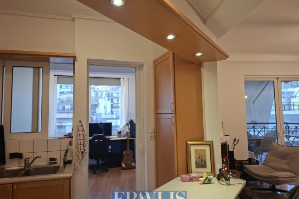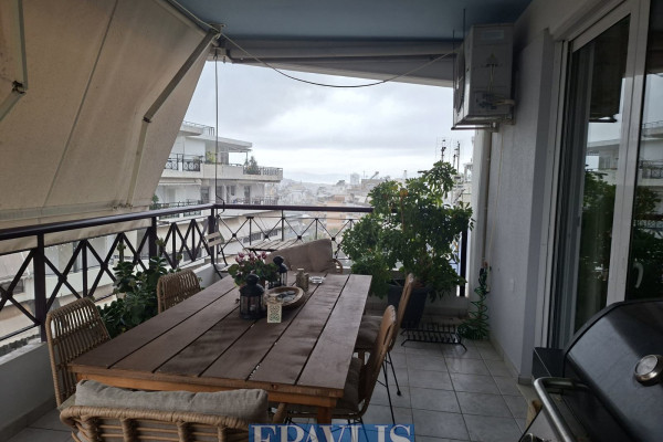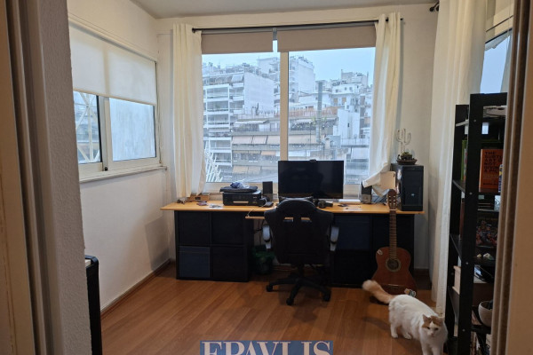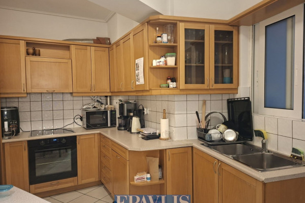 Zografou. Exceptional 120 sq.m. 4th-floor apartment, dual-aspect, with two balconies and open views, built in 2005, close to the Polytechnic. It consists of a spacious living area with fireplace and open-plan kitchen, three bedrooms plus a separate office space, one bathroom and a WC, air conditioning. It features autonomous oil heating, solar water heater, a private ground-floor garage with garage door, and a storage room. Located in a well-maintained apartment building and served by an elevator.