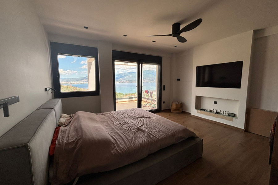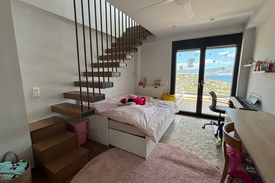 Villa 355 sqm with sea view for sale in Agios Stefanos, Volos. The villa consists of three levels.