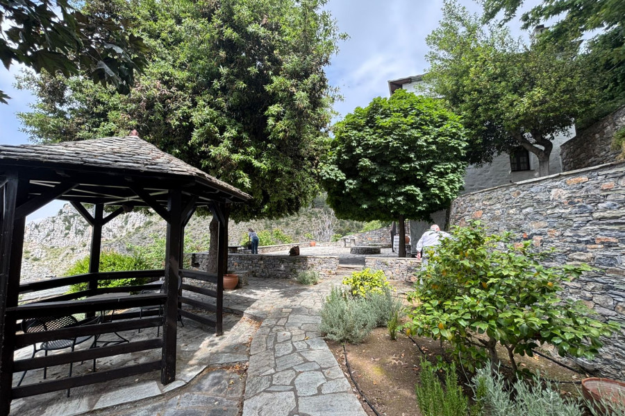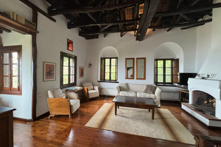 Upon entering the ground floor, there is a living room, kitchen, bathroom, and a storage area. An internal staircase leads to the mezzanine, which features a small sitting area and one bedroom. The first floor consists of an open-space which includes a living room with a fireplace, one bedroom, and a bathroom. The property offers panoramic views of Pelion, Volos, and the Pagasetic Gulf. The house was originally built in 1810 and has been fully renovated, preserving its traditional character while also being adapted to modern-day living needs. The outdoor space is designed with traditional Pelion stone and arranged over three different levels.