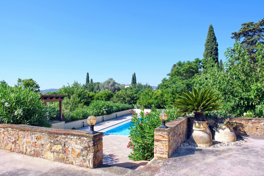 The property lies with in a lovely Mediterranean garden with orange and tangerine trees.
