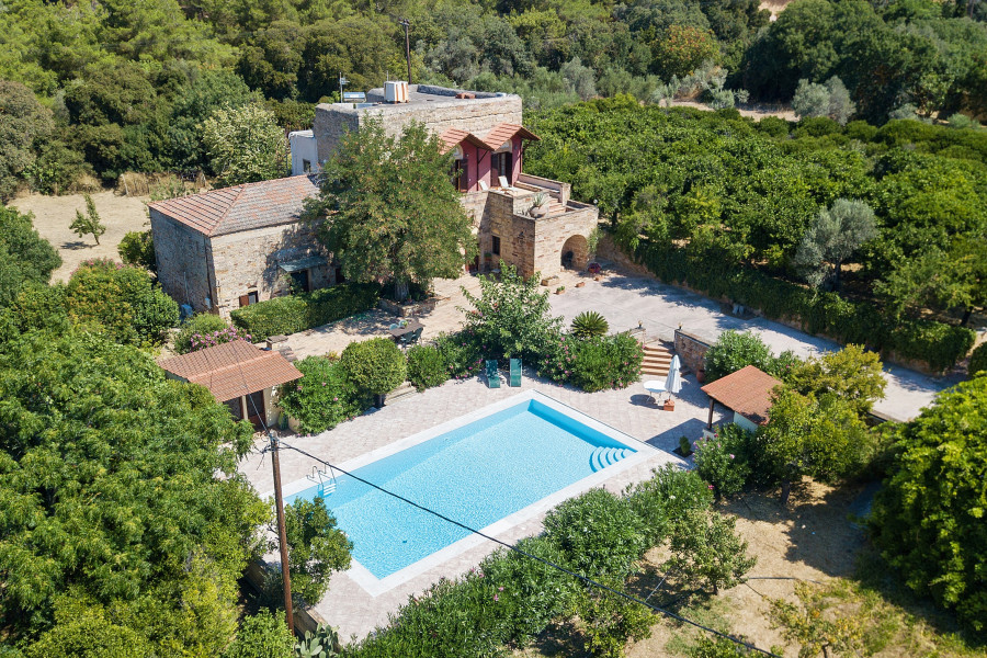 Α charming villa dating back to the 15th Century, during the period when the Genovese occupied the island, built with carved stone walls and arched ceilings, covers 248sq.m. on two levels. Renovated in 1982, the house now offers on the ground floor 2 living areas, a dining room, a kitchen, a small room and a bathroom.