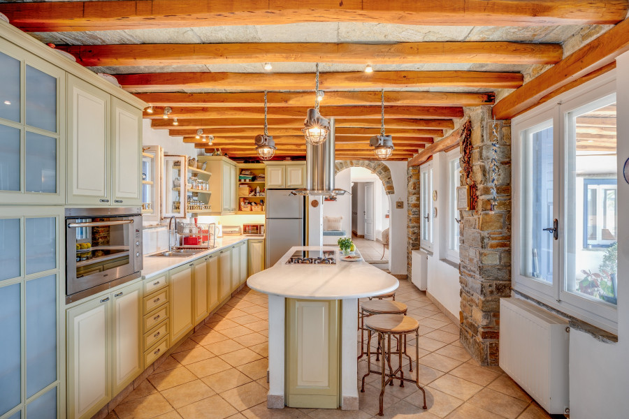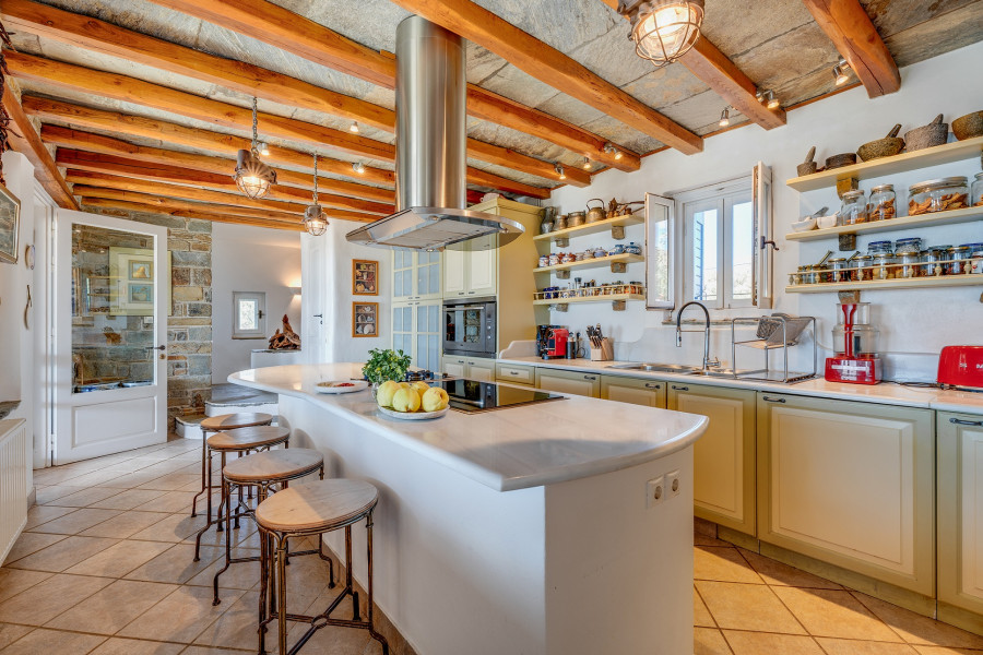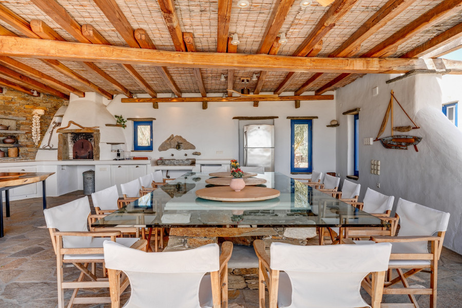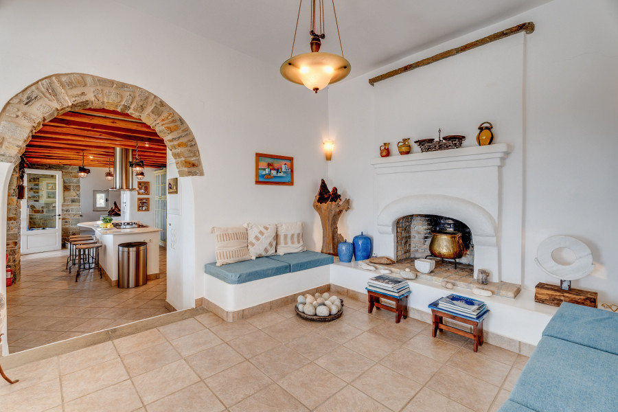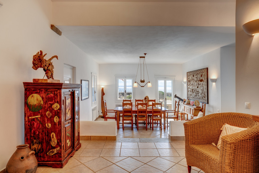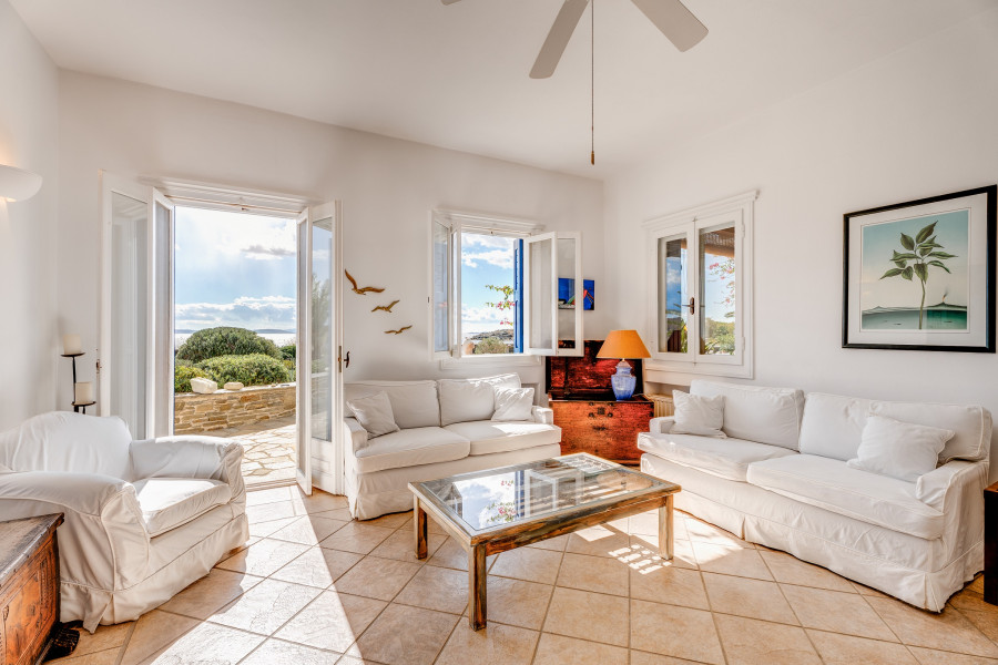 This exceptional residence unfolds across 2 levels, covering a total of 576sq.m. on a 4,316sq.m. plot, offering a rare connection to the natural landscape and the endless blue of the Aegean Sea.