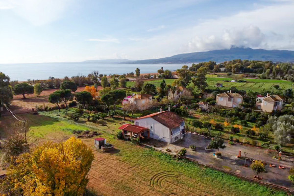 It has an amazing view of the Messinian Gulf Sea, Openness, Unobstructed. The area is Calm, Quiet, full of Peace and Beauty.