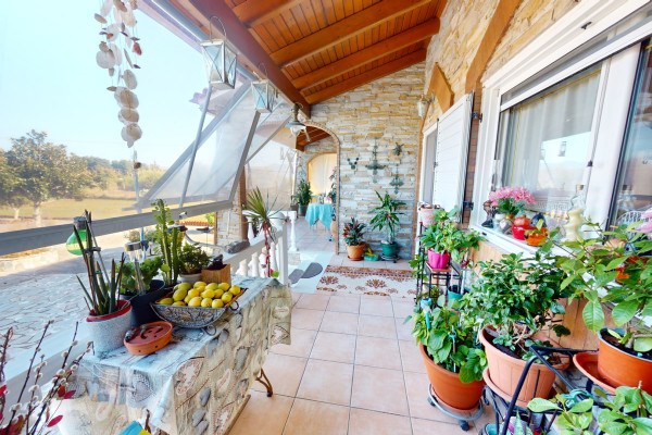 The residence has: Fireplace, Independent Oil Heating, Radiator, Air Conditioners in every room, Boiler, Air heater in the Bathroom, Aluminum Frames with Double Glazing and Opening or Electric Shutters, Screens, Awnings, Storage, Furnished, Electrical Appliances, Alarm, Perimeter Balconies, Floors are: Tiles, Stone. It also has Large Built-in Wardrobes, Ceiling Fans in every room, Wooden Ceiling, Tiled Roof. Its condition is: Amazing.