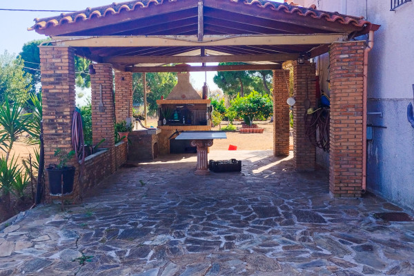 Surrounding Area: Garden, BBQ, Gazebo, Night Stream, Trees, Fruit Trees (Lotus, Orange, Lemon, Summer and Winter Tangerines, Lotuses, Olives, Yarmades, Apricots and many more.) Pit. 2 Wells, Motor, Water Pump, Outdoor Shower, 1 Closed Parking 9.74 sq.m.. There is 1 Agricultural clock that irrigates and 1 Domestic clock. Floor: Paved and Concrete.