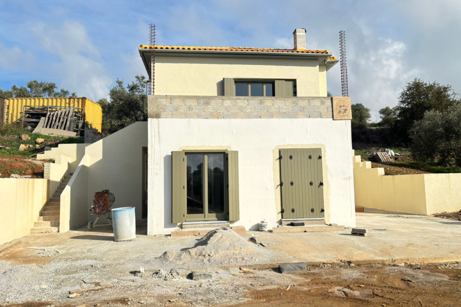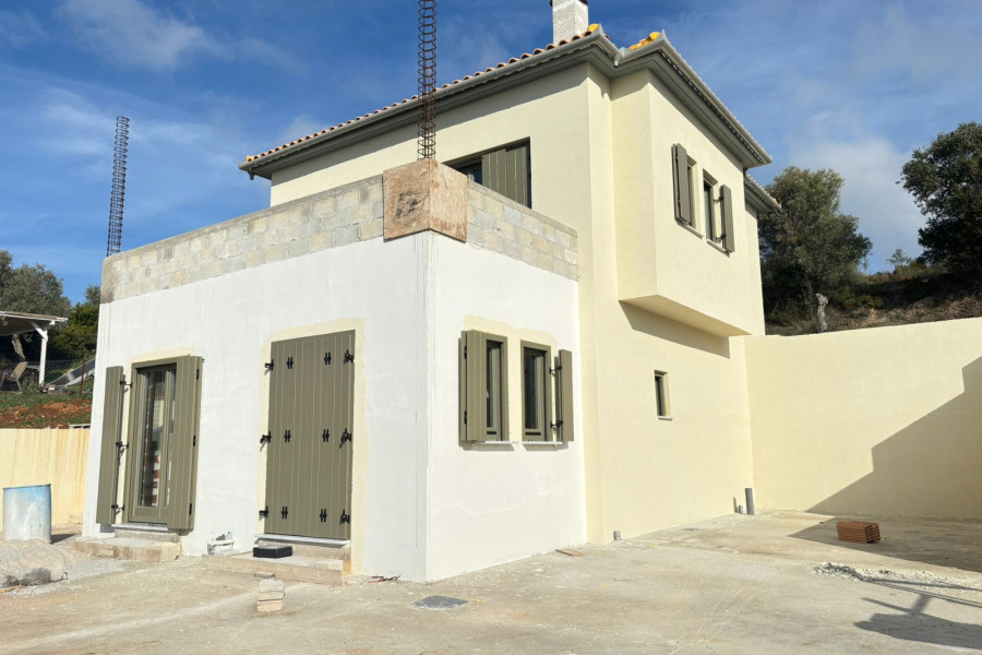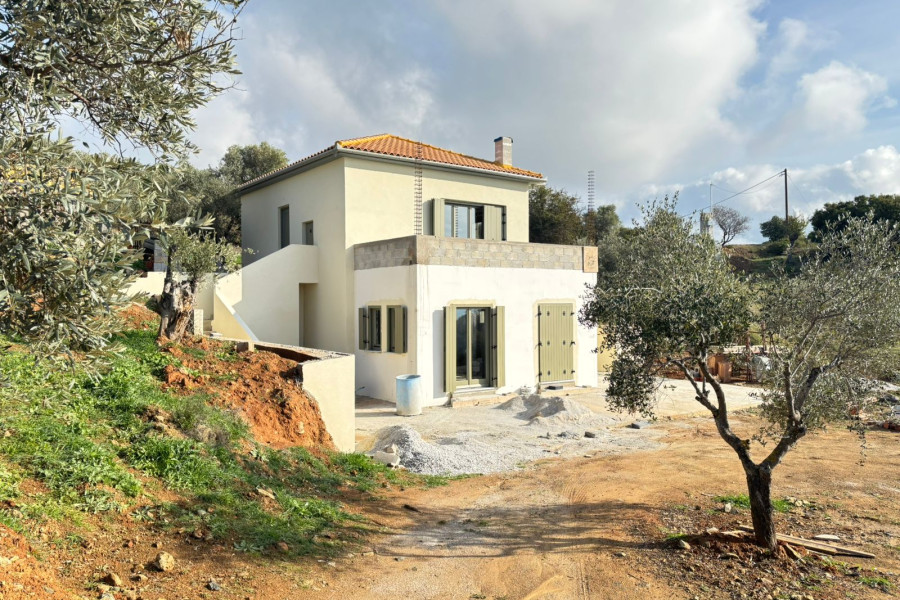 Detached house 106 sqm on a plot of 2454 sqm for sale in Argalasti, Pelion. The house offers stunning views and consists of two levels. The ground floor can be configured with two bedrooms ,one bathroom, one WC and two storage spaces. An internal staircase leads to the first floor, which can be configured with a spacious living room integrated with the dining area and open kitchen. The property is under construction and its completion is expected by May 2026. The price refers to the finished property.