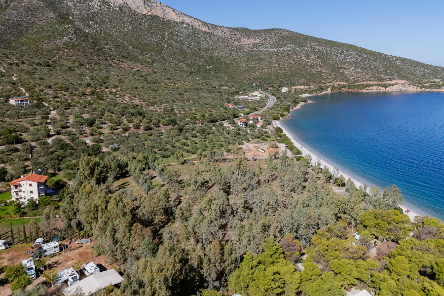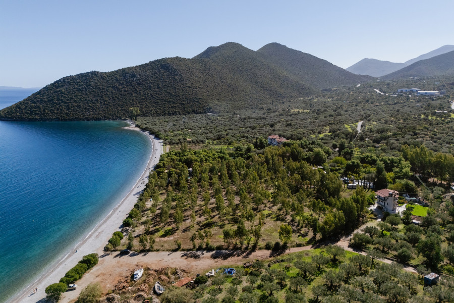 The property, with a total area of 12,333sq.m., offers unique views of the sea and the mountains, combining the tranquility of nature with the beauty of the coastal landscape. It has a pre-approved building permit valid until April 2026 for a complex of 6 residences and allows for the construction of 2,106sq.m. for tourist facilities or 436sq.m. for a private residence.