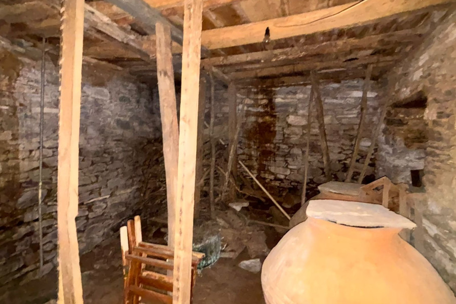 Stone detached house of 321 sq.m. for sale, in Promyri, Pelion, on a 700 sq.m. plot. Entering the raised ground floor, we find four comfortable rooms, a kitchen, and one bathroom. On the ground-floor level there is also a cellar, which can be converted into a residential space. Via an internal staircase, we go up to the first floor, where there are two rooms and an open-plan living room area. Access to the property is by car. The view is very beautiful. The house requires complete renovation.
