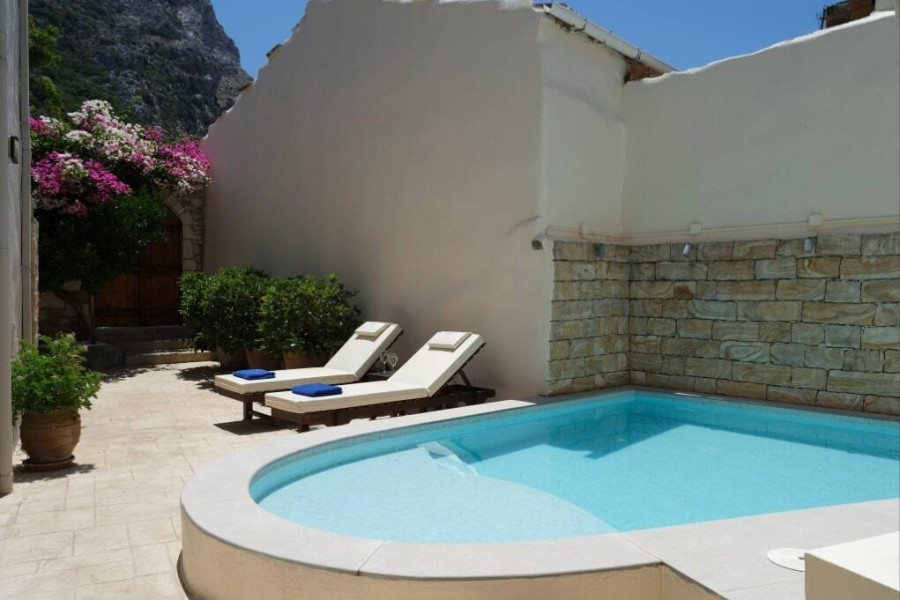 PROPERTY LAYOUTGround Floor Apartment2 bedrooms with double beds2 en-suite bathroomsKitchenette & sitting areaDirect access to the yardPrivate plunge pool (not heated)Outdoor area with sun loungers & gardenAir conditioning, Wi-FiFirst Floor Apartment2 bedrooms (1 double & 1 with bunk bed + single bed)1 bathroom + 1 WCSpacious living room with fireplaceFully equipped kitchenBalcony with viewsExclusive rooftop terrace with Jacuzzi & BBQ and panoramic viewsAir conditioning, Wi-FiOUTDOOR AREAS & AMENITIESPrivate swimming pool in the yardRooftop terrace with Jacuzzi & BBQGarden with plants, herbs & relaxation areaFully furnished & equippedPublic parking available very close to the propertyLOCATIONCenter of Spili village, Rethymno (altitude 430 m)Taverns, cafés & shops within walking distance20 minutes to the beaches of southern Crete35 minutes to Rethymno town✔️ Sold as one single property