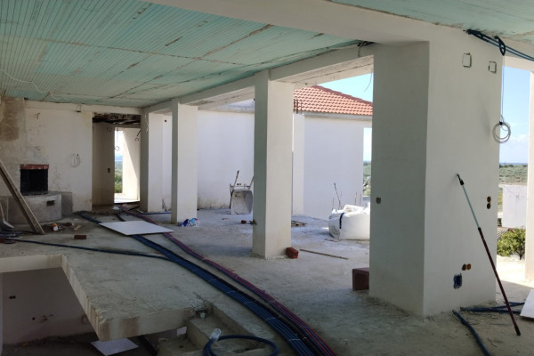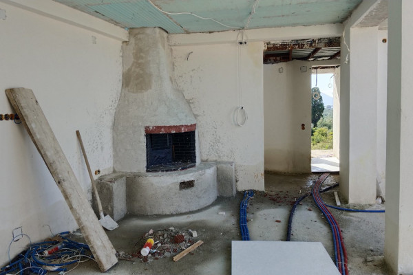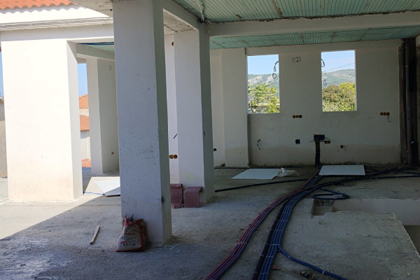 The building is at an advanced construction stage: the roof, plumbing, and electrical systems have been completed, meaning the structural shell and main infrastructure are in place, and only the interior finishes remain to be completed. There is also a valid permit for a 27 sq.m. swimming pool, offering the opportunity to create a luxurious outdoor space for relaxation.
