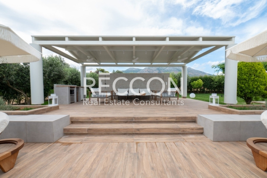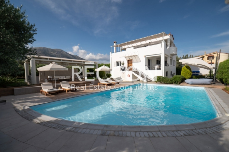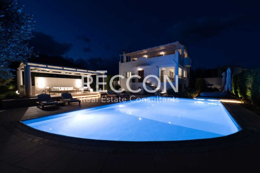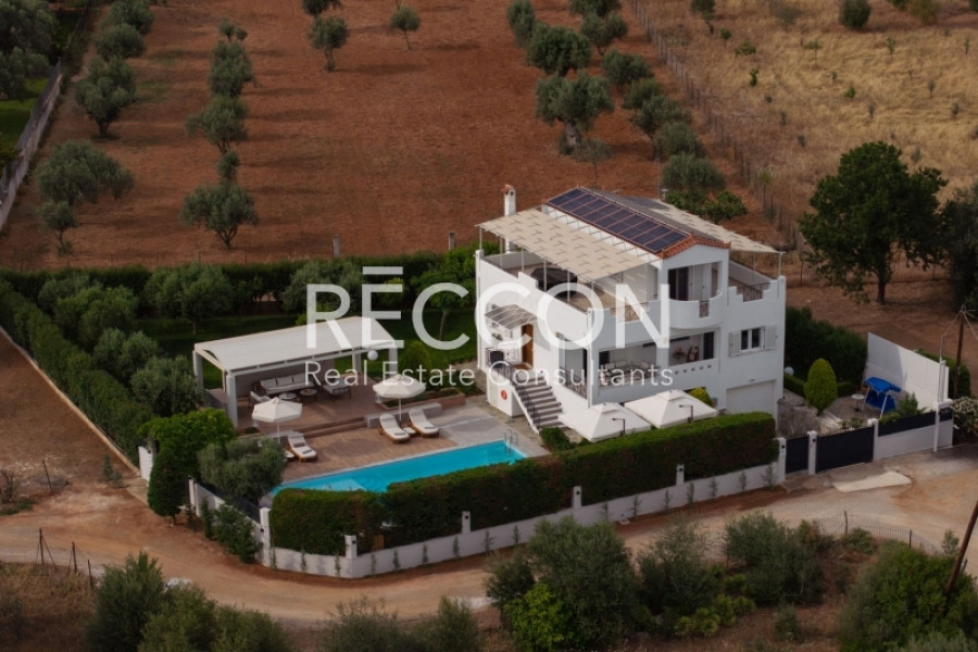 Property Code: 3418 - Villa FOR SALE in Eretria Agioi Asomatoi for € 790.000 . This 220.00 sq. m. furnished Villa consists of 2 levels and features 4 Bedrooms, an open-plan kitchen/living room, 2 bathrooms and 2 WC. The property also boasts Heating system: Central oil heating, tiled floor, view of the Sea, Window frames: Aluminium, Armourplated door, a storage unit sqm, garden, fireplace, swimming pool, A/C, alarm system, electrical appliances, awnings, insect screens, double-glazed windows, solar-powered water heater, boiler, entry stairs, BBQ, roof Garden, ceramic roof, photovoltaic panels, playroom, dressing room, satellite dish, CCTV cameras, intercom TV, off-peak electricity rates during night hours, open space, internal staircase. The building was constructed in 2005 and renovated in 2024 Plot area: 1100 s.q. . Building Energy Rating: A+ Distance from sea 800 meters, Distance from the city center: 25000 meters, Distance from nearest village: 4000 meters, Distance from nearest airport: 110000 meters,