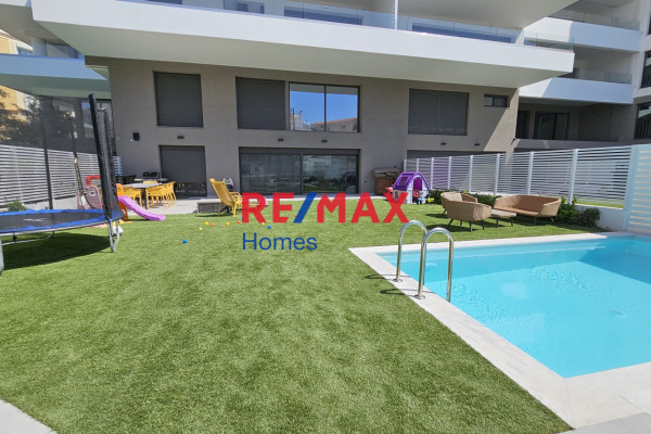 Elliniko, Luxury Maisonette For Sale, 142 sq.m. with garden and swimming pool. It is developed on two levels (Ground floor and 1st floor), offering a living-dining room, three spacious bedrooms, including a large master room, two modern bathrooms and a WC. Year of construction: 2022. It has 3 parking spaces with the possibility of charging electric cars and a large basement storage room. The maisonette has exclusive use of a 214 m2 garden, an 18 m2 swimming pool, an electric garden awning and a separate garden-main street door.