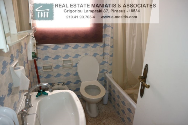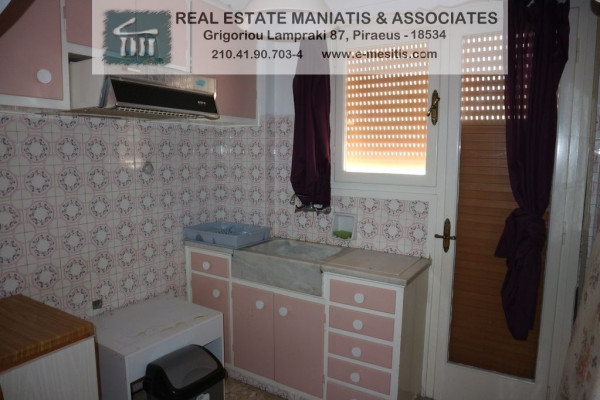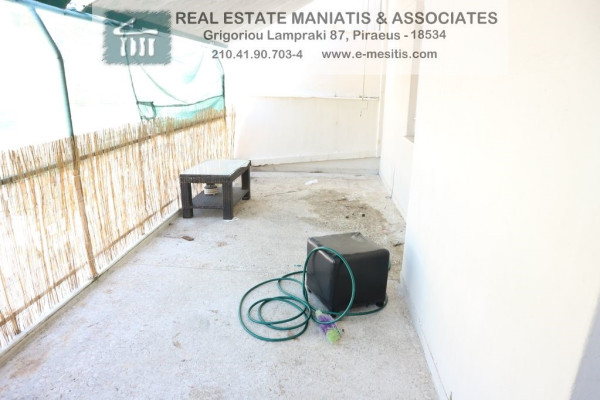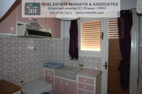 For Rent, 5th floor apartment in the area: Piraeus - Pasalimani. The area of the property is 45 sq.m.. It consists of: 1 bedroom, bathroom, living room, kitchen, terrace. It was built in 1976, and also has air conditioning, wooden frames, energy certificate: H and the floors are: marble. Its condition is: freshly painted, very good, located near Metro, tram, transportation, beach, People's Market, Super Market, city center, University. The property is a floor apartment, painted, penthouse, frontage, bright, airy, is suitable for Students and also has the following features and advantages: awnings, elevator, security door, Price: €450. Maniatis & Associates, Contact Phone: 2104190703, email: