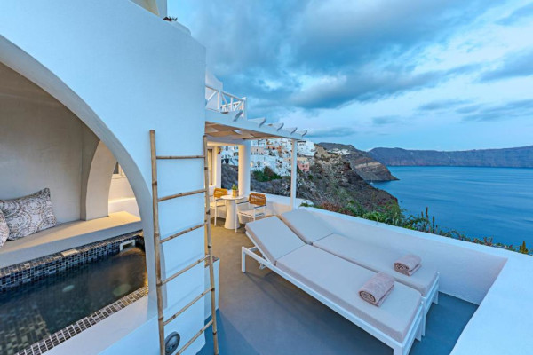 In the traditional settlement of Oia, in a spot with a breathtaking view, 2 unique suites are available for sale.