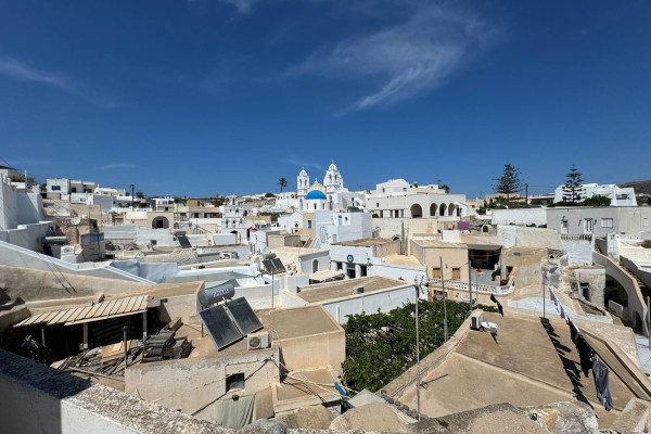 The property, due to its privileged location within the settlement, has a unique view of the entire traditional settlement with its blue domes and famous bell towers, as well as an unobstructed view of the sea, something that few properties in Megalochori have.