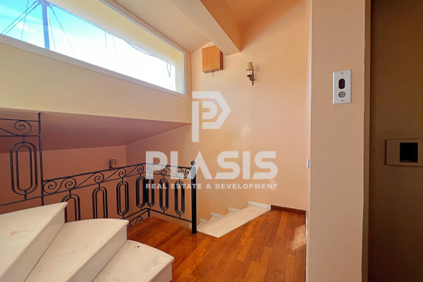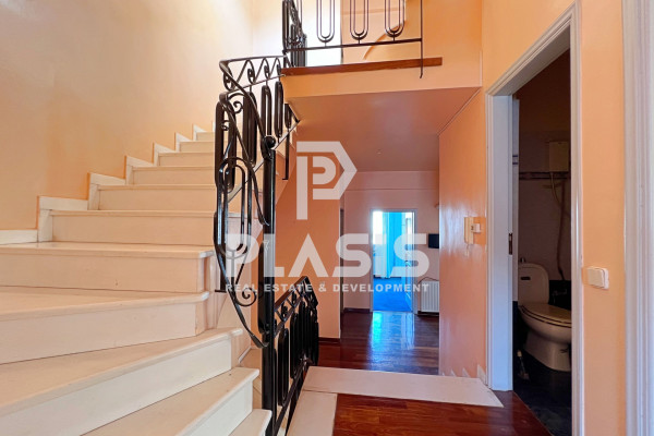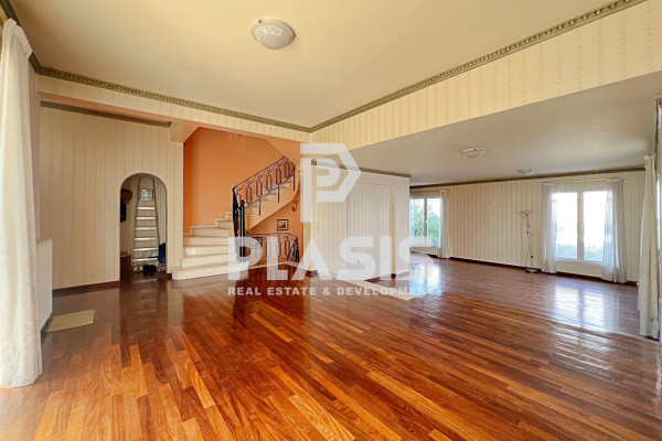 Detached house For sale, floor: 2nd, in Voula - Pigadakia. The Detached house is 385 sq.m. and it is located on a plot of 312 sq.m.. It consists of: 4 bedrooms (1 Master), 3 bathrooms, 2 wc, 2 kitchens, 2 living rooms and it also has 1 parkings (1 Closed). The property was built in 1989. Its heating is Autonomous with Oil, Air conditioning are also available, it has Aluminum frames with Double glazed windows, the energy certificate is: D and its floors are Tiles, Wooden. The property's status is: Needs renovation, it is close to Park, Sea, School, 1 Km from sea, 0.5 Km from city, it has Nature, Openness view and it has Southeast orientation. The Detached house is With Facade, Bright, Sunny, Airy, Lower level house and it also has the following unique features and advantages: Elevator, Attic, Internal staircase, Swimming pool, Garden, Security door, CCTV, Internal elevator, Internet, Playroom, Night stream, Trees, Pets allowed, Quiet neighborhood, Porch, Internal yard, Service/Maid’s room, Drains, Office room. Price: €1,350,000. Plasis Real Estate Glyfada, contact phone: 2109601909, email: