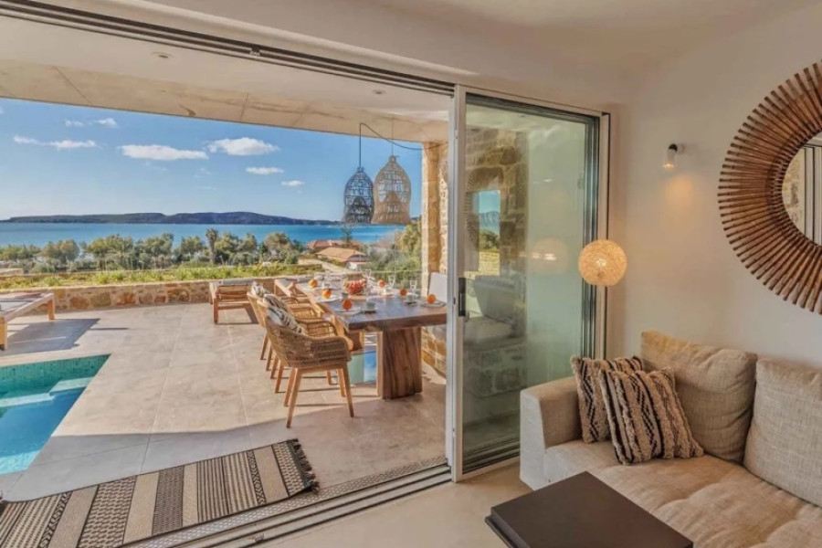 Set above the pristine coastline of Navarino Bay, this contemporary three-level villa delivers privacy, comfort, and unobstructed sea views in a refined, resort-style environment. Designed for discerning owners and guests, the property balances modern living with strong short-term rental performance.Whether positioned as a private holiday residence, a premium rental asset, or both, the villa offers a calm, secluded setting without sacrificing proximity to lifestyle and leisure amenities.Just a short walk from Gialova’s waterfront promenade, residents enjoy immediate access to high-quality tavernas, restaurants, cafés, and bars. Within a 5–15 minute drive lie some of the Peloponnese’s most iconic beaches—including the world-renowned Voidokilia Beach—as well as exclusive beach clubs and championship golf courses.Property HighlightsLiving area: 174 m² across three levelsLayout: Approx. 55 m² per floorBedrooms: 3 king-size bedrooms (accommodates up to 6 guests)Bathrooms: 3Kitchen: Fully equippedOutdoor living: Private pool with panoramic sea viewsWellness: Private saunaClimate control: Air conditioning & heating (A/C fan coils)Technology: Smart TVUtilities: Washing machineParking: Free private parkingAccess: 99 steps to the villaYear of construction: 2021Investment ProfileAnnual operating costs: approx. €6,000–8,000Estimated rental income: approx. €50,000 per annumEnergy efficiency class: Available upon requestLocation OverviewGialova is one of the southern Peloponnese’s most established luxury micro-markets, surrounded by olive groves and anchored by Navarino Bay’s high-end tourism ecosystem. The area benefits from year-round international demand, proximity to premium golf resorts, and limited supply of high-quality villas—supporting both capital preservation and income generation.Asking Price€820,000A clean, modern asset in a proven luxury destination. No fluff—this is lifestyle real estate with fundamentals that work.