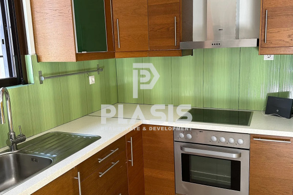 Apartment For rent, floor: 1st, in Voula - Panorama. The Apartment is 115 sq.m.. It consists of: 3 bedrooms, 2 bathrooms, 1 kitchens, 1 living rooms. The property was built in 1990. Its heating is Autonomous with Natural gas, Air conditioning are also available, it has Aluminum frames with Double glazed windows, the energy certificate is: C and its floors are Tiles. The property's status is: Very good condition, it is close to Transportation, Park, School, it has Mountain, Openness view. The Apartment is Whole floor, Painted, With Facade, Bright, Airy, Sunny, Airy and it also has the following unique features and advantages: Window Screens, Electric Appliances, Garden, Security door, CCTV, Night stream, Quiet neighborhood. Price: €1,100. Plasis Real Estate Glyfada, contact phone: 2109601909, email: