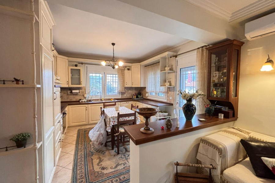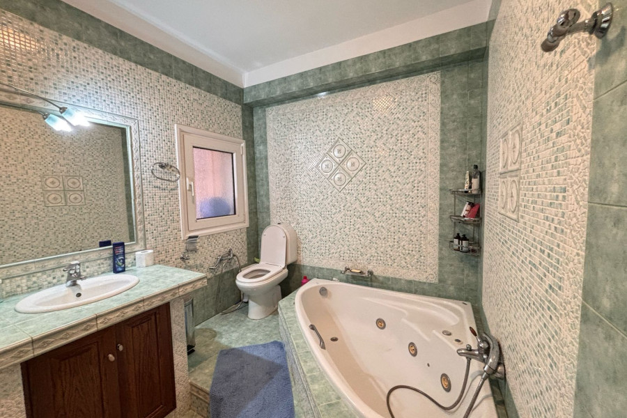 Villa 260 sqm is for sale near the beach, in Alykes, Volos. The villa consists of three levels. Upon entering the ground floor, we find a spacious outdoor living room with a fireplace, a separate kitchen with a dining area, and a bathroom. An internal staircase leads to the first floor, which features 3 comfortable bedrooms and a bathroom. There is an autonomous basement with one bedroom, a kitchen with a living room, and a bathroom, which is also connected to the rest of the house via an internal staircase. The property is energy-independent, as there is a photovoltaic system on the roof. The yard is landscaped with grass, includes a BBQ area, and the property is located right next to the beach.