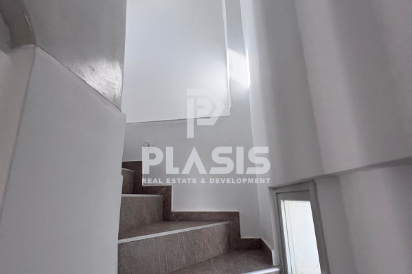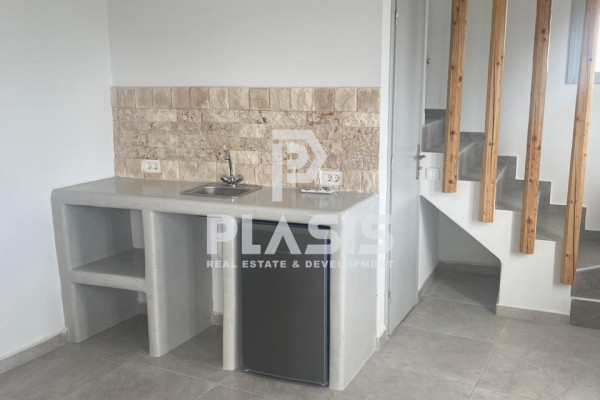 Maisonette of 40 sq.m., which on the ground floor has a comfortable living room with a kitchenette and a bathroom, while on the upper level there is a bedroom and a second bathroom.