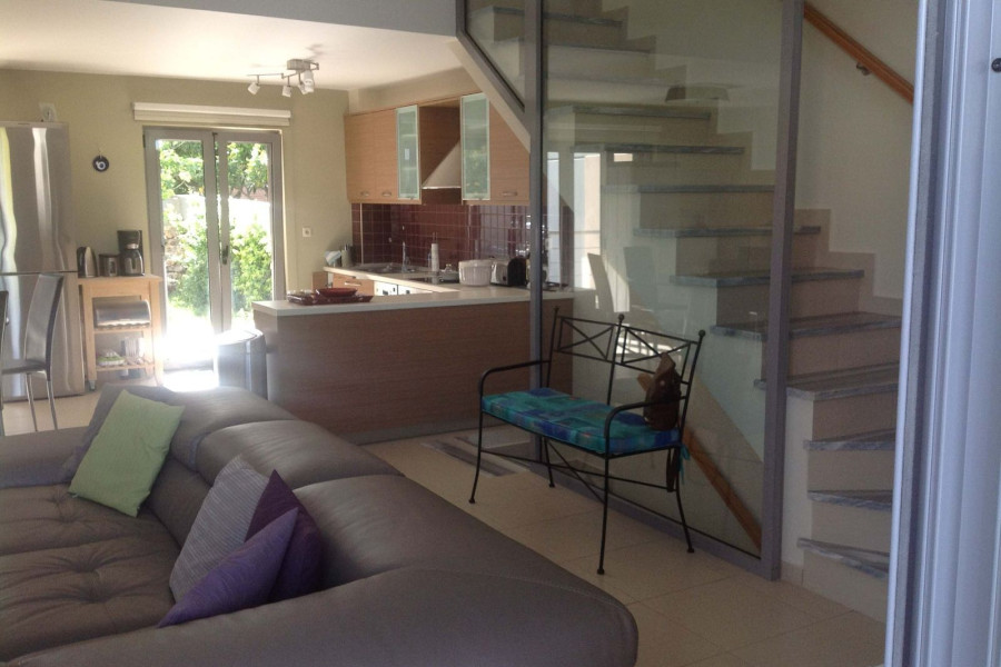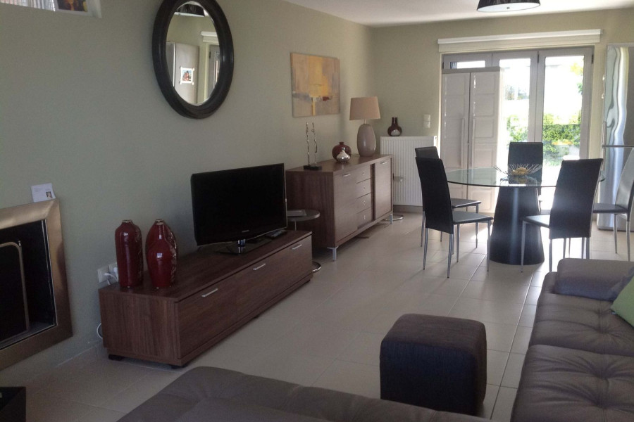Living room (with fireplace), dining room and kitchen (fully equipped).