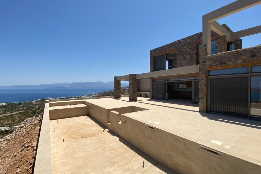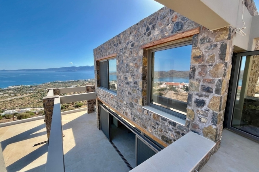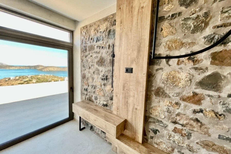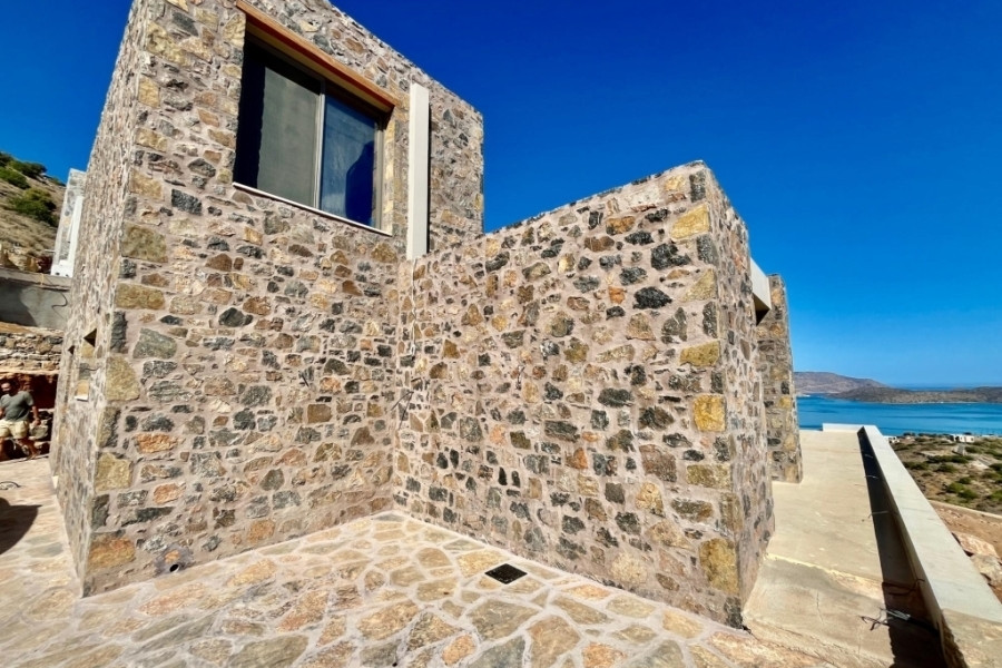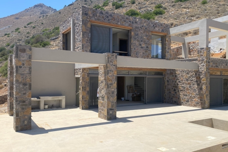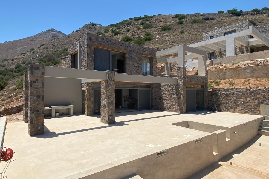 New built villa of 78 m² on two floors is available for sale in cosmopolitan Elounda. It is just 1 km from the sea, 10 km from the town of Agios Nikolaos and 73 km from the International Airport of Heraklion. It is developed within a plot of 2.200 m² and consists on the ground floor of an open area living room with a fully equipped kitchen and a bedroom with an internal bathroom. The living room opens to an outdoor terrace with a pergola, an infinity pool of 62.6 m² with jacuzzi of 4.8 m² with a relaxation area and a wonderful outdoor dining area with a BBQ. An internal staircase will lead to the upper floor where there is the master bedroom with its own internal bathroom. Outside there is an open parking space for one vehicle and a landscaped outdoor area. Built on an amphitheatrical hill, it offers from both levels panoramic views of the surrounding area and the bay of Elounda , making it an ideal choice for those who want their permanent or holiday residence in a very exceptional location. A unique villa that characterized by the earthy shades of the stone and the unobstructed view from the sky to the sea. This villa will be sold furnished and completed in February 2026.