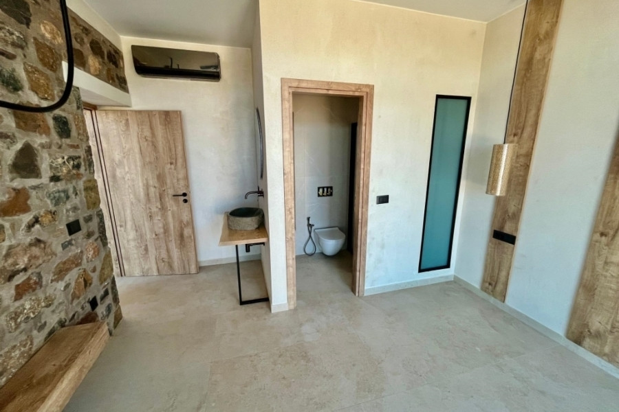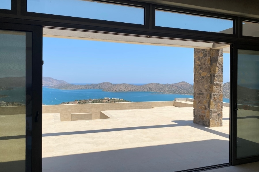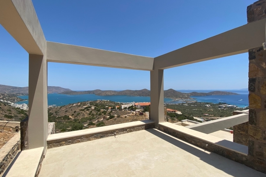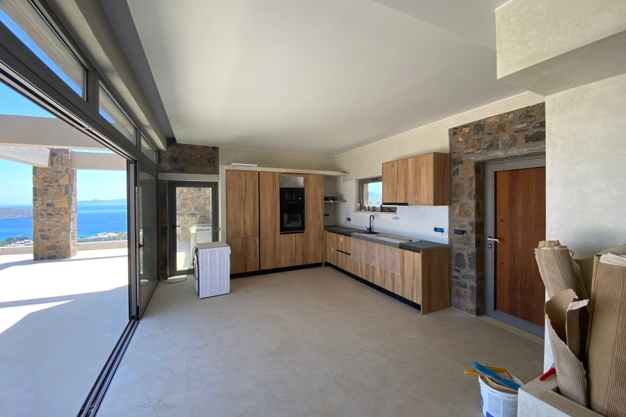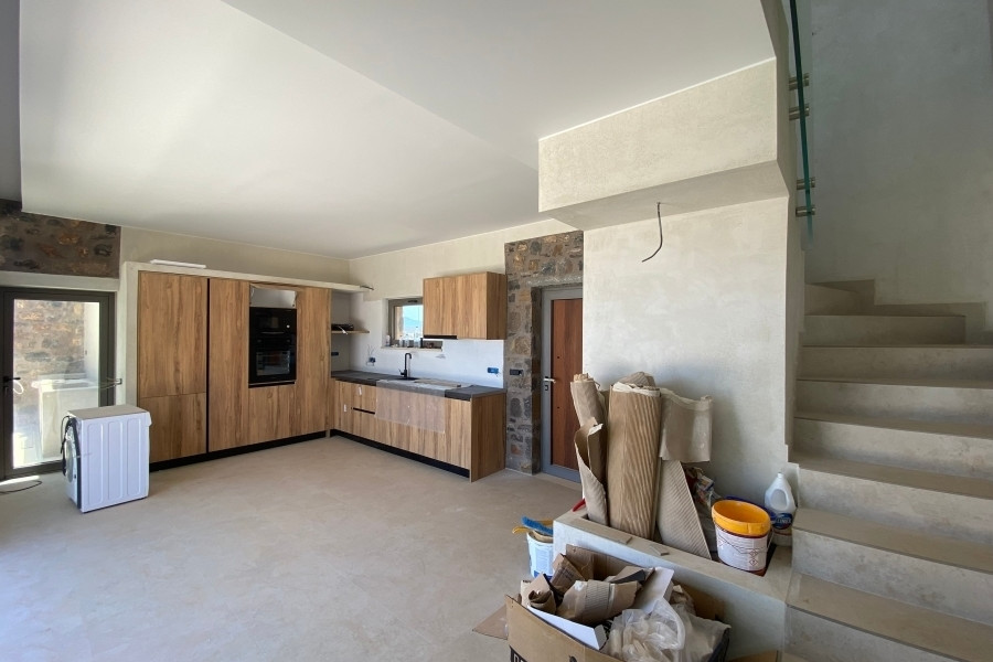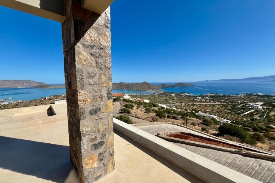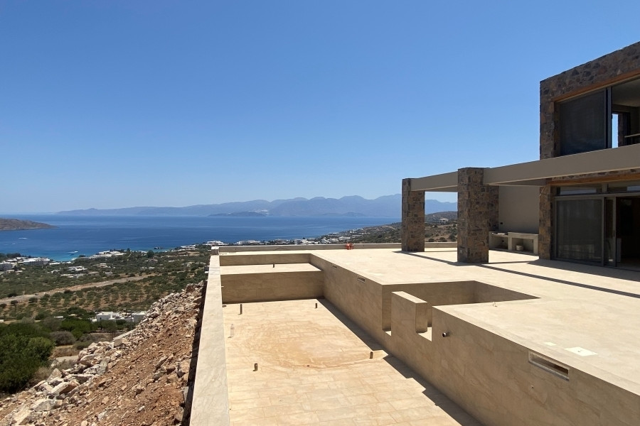 New built villa of 78 m² on two floors is available for sale in cosmopolitan Elounda. It is just 1 km from the sea, 10 km from the town of Agios Nikolaos and 73 km from the International Airport of Heraklion. It is developed within a plot of 2.200 m² and consists on the ground floor of an open area living room with a fully equipped kitchen and a bedroom with an internal bathroom. The living room opens to an outdoor terrace with a pergola, an infinity pool of 62.6 m² with jacuzzi of 4.8 m² with a relaxation area and a wonderful outdoor dining area with a BBQ. An internal staircase will lead to the upper floor where there is the master bedroom with its own internal bathroom. Outside there is an open parking space for one vehicle and a landscaped outdoor area. Built on an amphitheatrical hill, it offers from both levels panoramic views of the surrounding area and the bay of Elounda , making it an ideal choice for those who want their permanent or holiday residence in a very exceptional location. A unique villa that characterized by the earthy shades of the stone and the unobstructed view from the sky to the sea. This villa will be sold furnished and completed in February 2026.