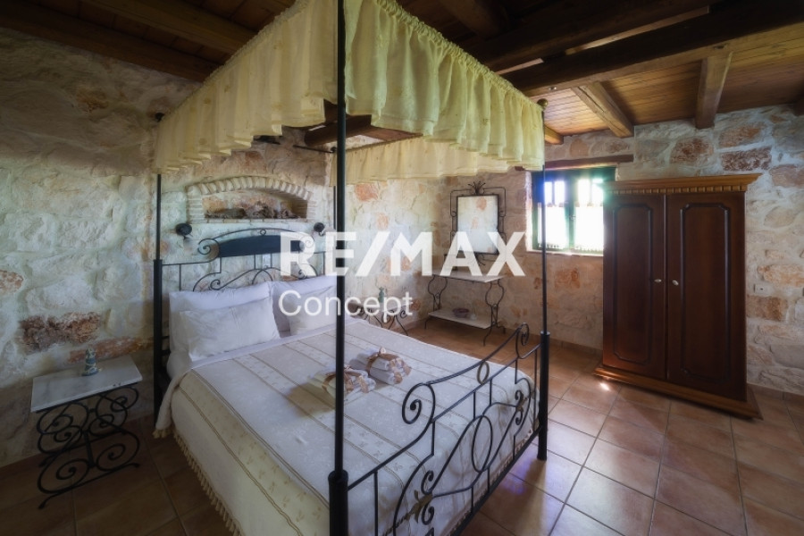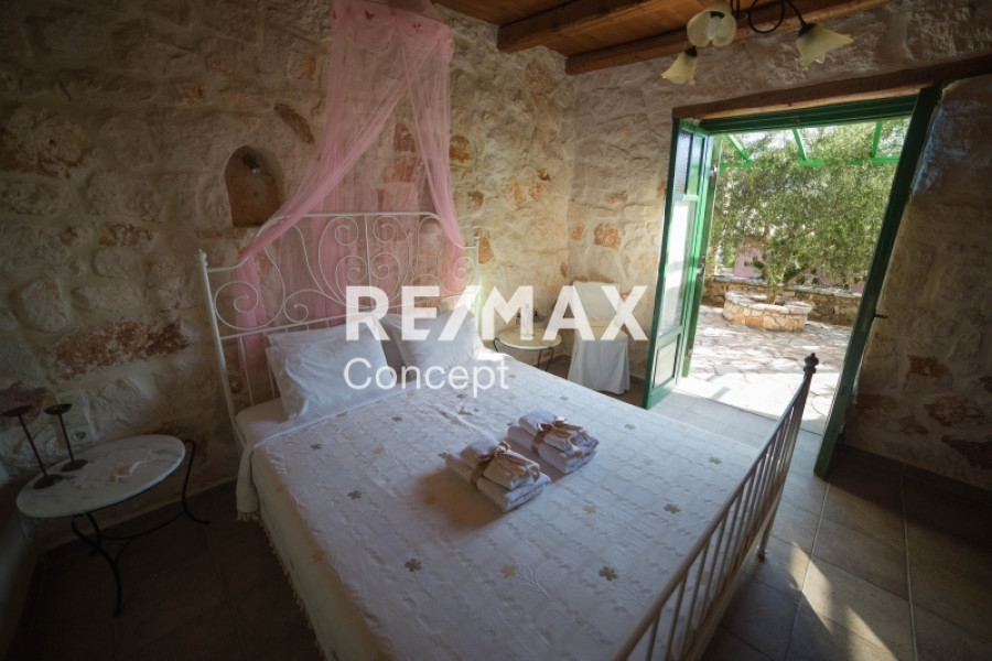 Property Code: 2-433Located in one of the most authentic and tranquil areas of Zakynthos, in Keri, this residential complex is offered for sale, combining quality construction, comfort, and complete harmony with the natural surroundings. The location ensures privacy and serenity, making it an ideal choice both for permanent residence and for touristic exploitation.The complex consists of two independent villas, each with a total area of 180 sq.m., set on a privately owned plot of 4,100 sq.m. Each villa is developed on two levels and features an identical, highly functional layout, offering flexibility of use and the possibility of creating independent living spaces.The ground floor functions as a self-contained apartment and includes two bedrooms, a spacious and bright living room with a traditional fireplace, a fully equipped kitchen, a bathroom, and a covered veranda overlooking the lush green landscape of the area. The first floor, together with the attic, forms an independent maisonette with a separate entrance. The first floor comprises a bedroom, a kitchen, a living area with a fireplace, and a bathroom, while the attic offers two additional bedrooms, a bathroom, and a private balcony with unobstructed views of Keri’s natural beauty.The villas are sold fully furnished with carefully selected antique furniture, which enhances their unique character and timeless elegance and is included in the asking price. The property represents a highly attractive investment opportunity, as it combines traditional architecture with modern amenities and is situated in an area of strong and growing touristic demand.Overall, the complex exudes quality and refined aesthetics, making it a high-value option for those seeking either a distinctive residence or a sound investment in Zakynthos.
