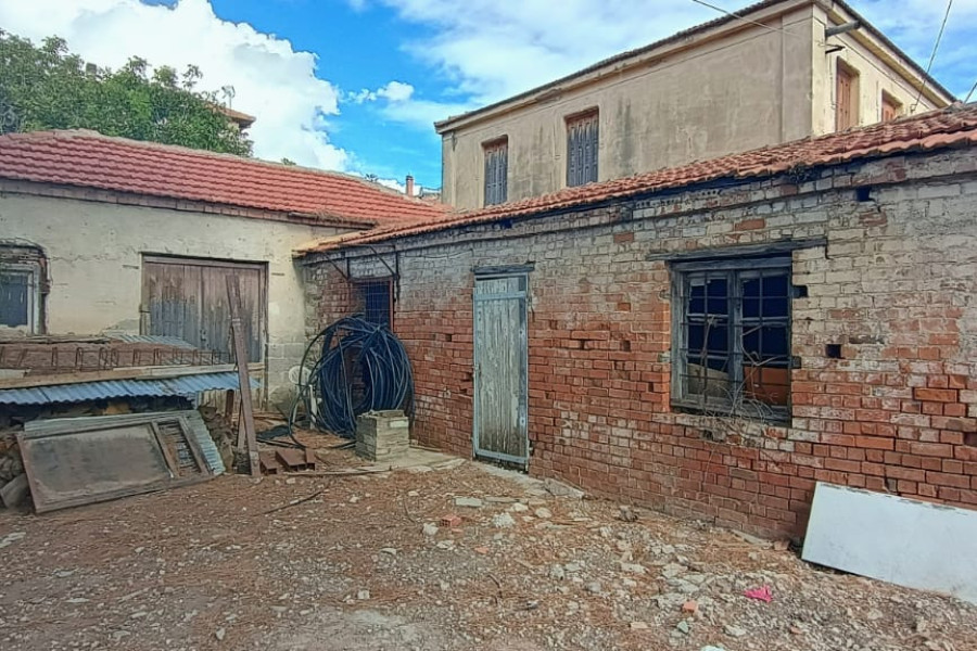 Stone house 160 sqm on a 1300 sqm plot in Ano Lechonia, Volos. The house consists of two levels. On the ground floor, there are four bedrooms. An internal staircase leads to the upper floor, which features a large open-plan area with a balcony offering sea views. The plot also includes an additional 30 sqm ground-floor building and two separate storage rooms, each 45 sqm. The property requires renovation.