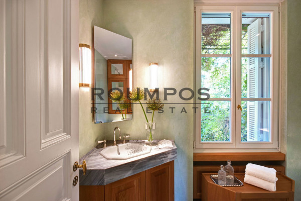 The interiors stand out for their aristocratic aesthetics. The kitchen and bathrooms were designed by the award-winning office K-Studio and feature high aesthetic and quality equipment (Lefroy Brooks, Devon & Devon, Miele), while the wardrobes are reminiscent of neat boutique showrooms.