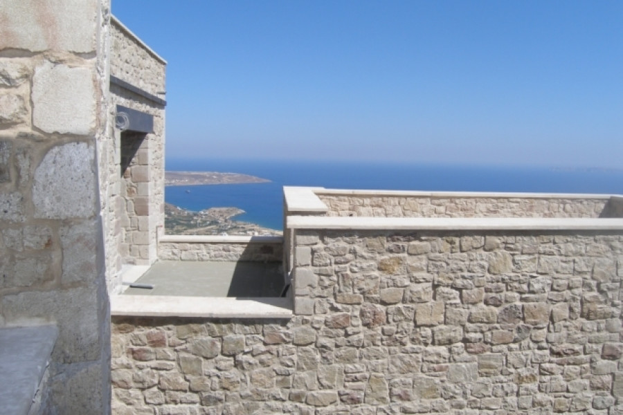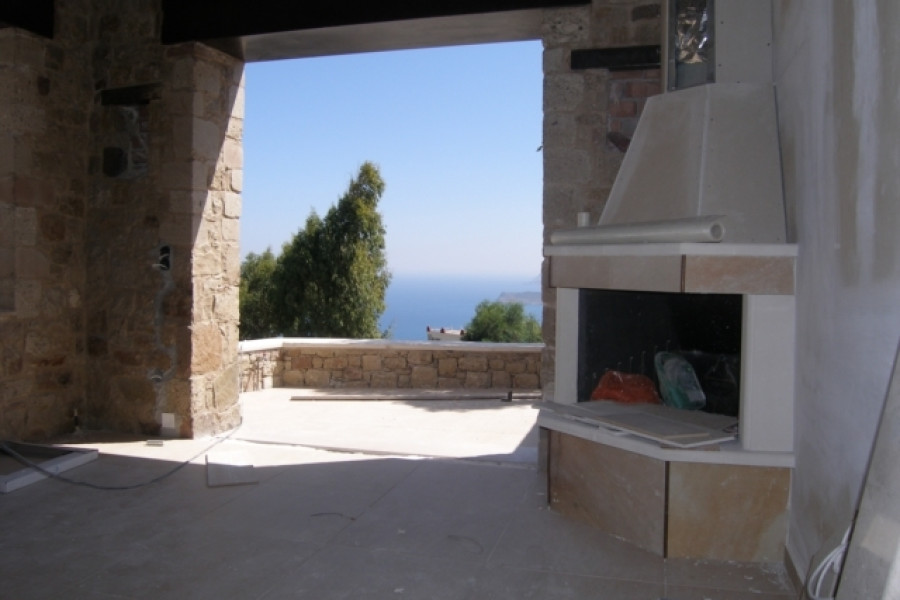 Located on a hill this 133 m² stone built house has a fantastic panoramic view over the countryside to the sea less than 4 km away. The charming and increasingly popular harbour town of Sitia with its soon to be international airport is also only 8 km away in Eastern Crete. The accommodation comprises an open plan lounge and dining area with a feature fireplace, a kitchen, a store room, two en-suite bedrooms one with a private 20 m² veranda and a guest toilet with shower. This house largely with wooden beamed ceilings is centrally heated and air-conditioned, it has a solar system, all the windows are anti-mist triplex glass and mosquito netted and finally all the terraces have pergolas. In the most convenient location in an ever improving area this house makes a lovely character home or holiday retreat and an investment for the future.