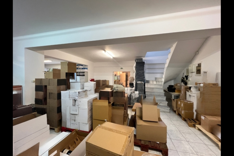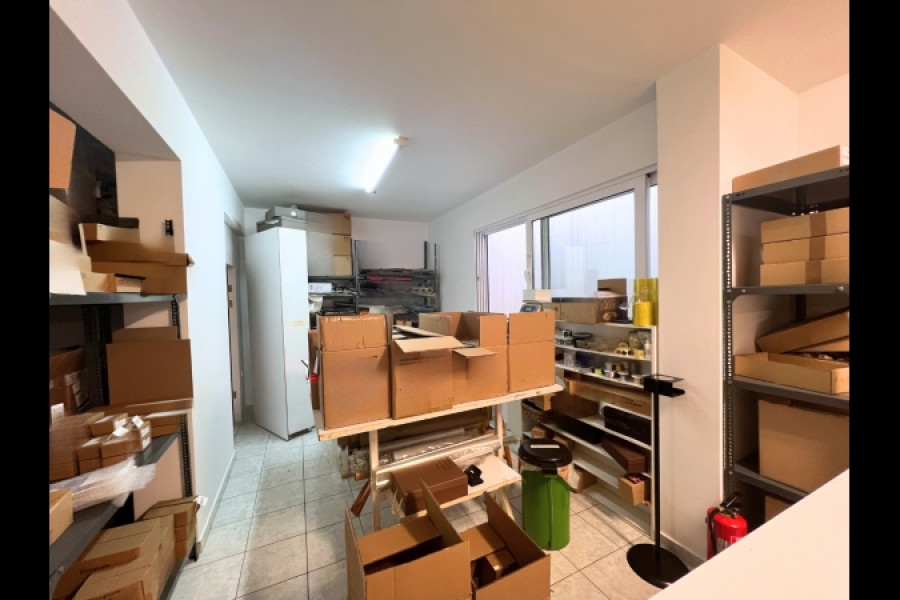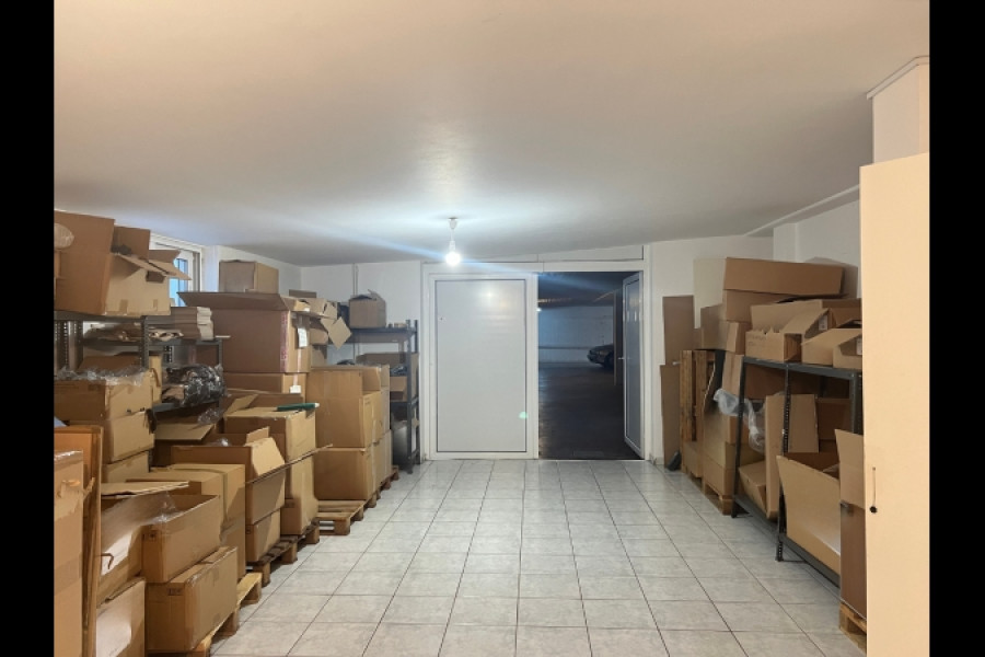 Basement warehouse in excellent condition 174 sqm with internal parking space of 13,80sqm and ground floor office of 14 sqm. It includes a ramp for easy access and the door to the basement space is double giving the possibility to enter a van for loading - unloading products. It is very bright and adequately ventilated as it includes 4 cour anglaise and 3 windows. It is connected by an internal staircase to the ground floor office space. There are wc's on both levels and kitchenette. It is located in a show building in a lush garden, very close to the shopping centre, school, square, kindergarten, supermarket etc. Property suitable for business use either as a warehouse only or as a head office as the ground floor space is for main use or for investment.