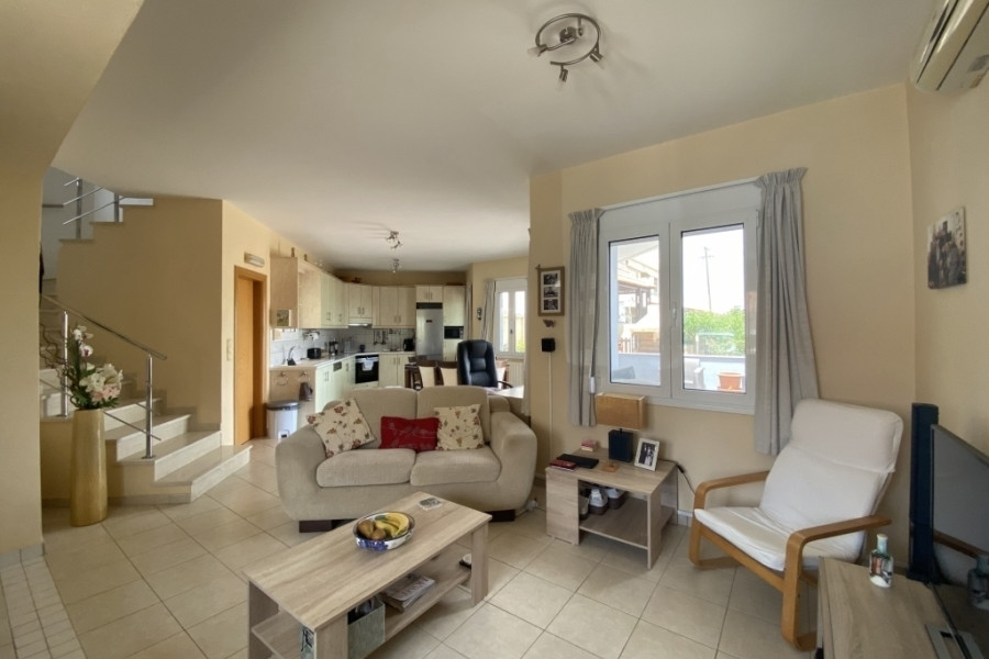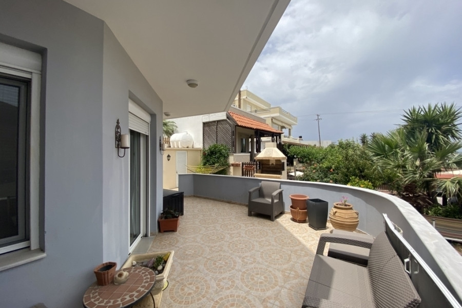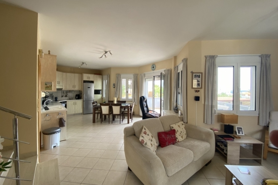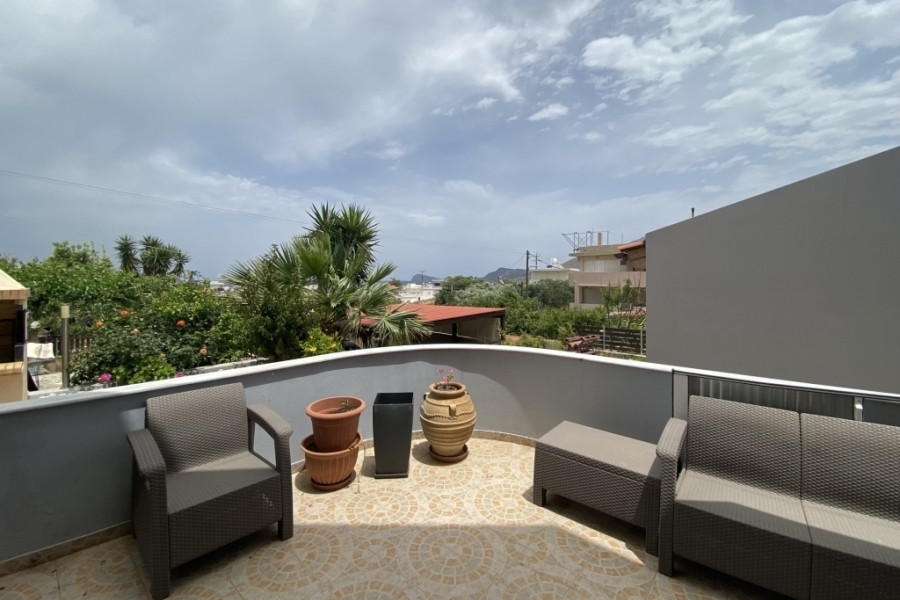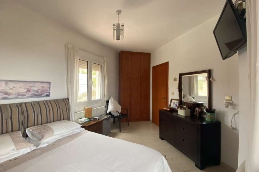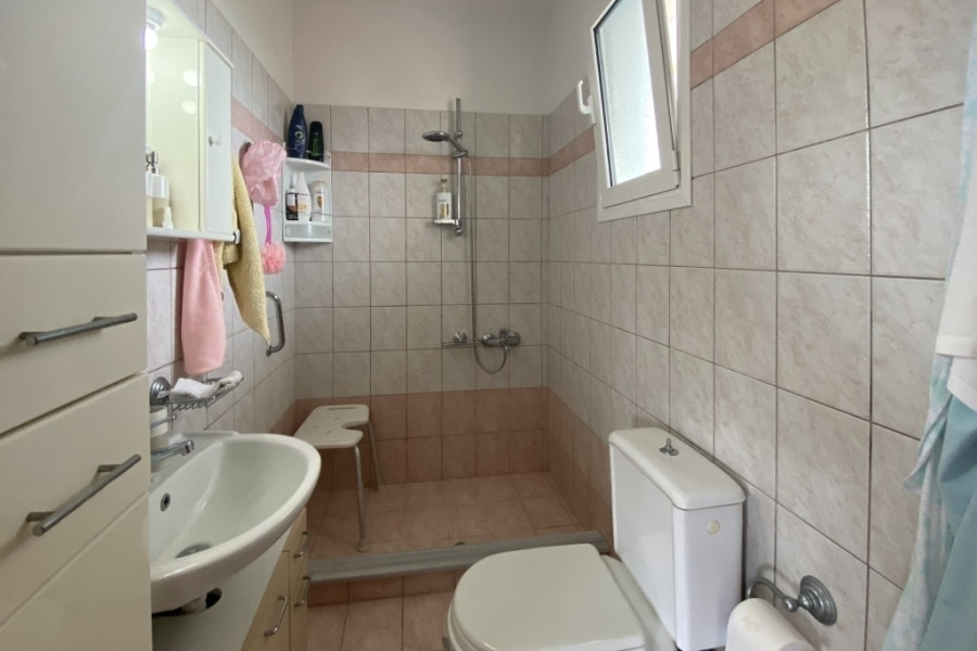 Furnished detached house of 90 m² is available for sale in Pachia Ammos of Lassithi. It is 600 meters from a sandy beach, 15 km from the city of Ierapetra, 20 km from Agios Nikolaos and 85 km from the International Airport of Heraklion. It is a sunny and airy house that is developed on two levels. The entrance opens to a spacious living room with dining area, a WC and a large fully equipped kitchen. The ground floor opens through a balcony door to the terrace, where there is a BBQ and relaxation area. An internal staircase leads to the second level where there are two bedrooms and a bathroom with shower. In addition, the house has a storage room and parking space for one vehicle. It provides air conditioning, central heating, solar, alarm, WI-FI and satellite antenna. Built in 2005, it offers beautiful views of the sea and the surrounding area, making it an ideal choice for your permanent or holiday residence.