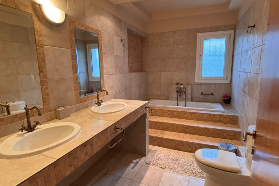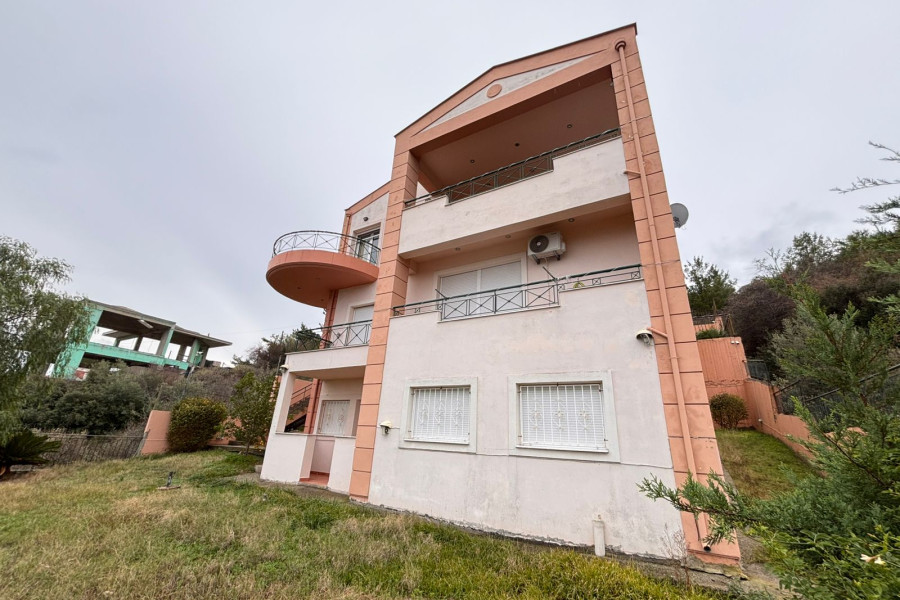 Villa 298 sqm with breathtaking sea views, on a plot of 600 sqm for sale in Agios Stefanos, Volos. Upon entering, we find a spacious living room, a kitchen with dining area, and a WC. An internal staircase leads to the second floor, which features a master bedroom with its own bathroom and walk-in closet, three additional bedrooms, and a bathroom. The ground floor, which is the last level of the house, consists of a spacious living room, kitchen, and bathroom. It has its own separate entrance and is connected to the rest of the house by both internal and external stairs, offering the potential to be used as an independent apartment. The property offers amazing views of the Pagasetic Gulf from every room, which are bright and spacious. It has oil heating.